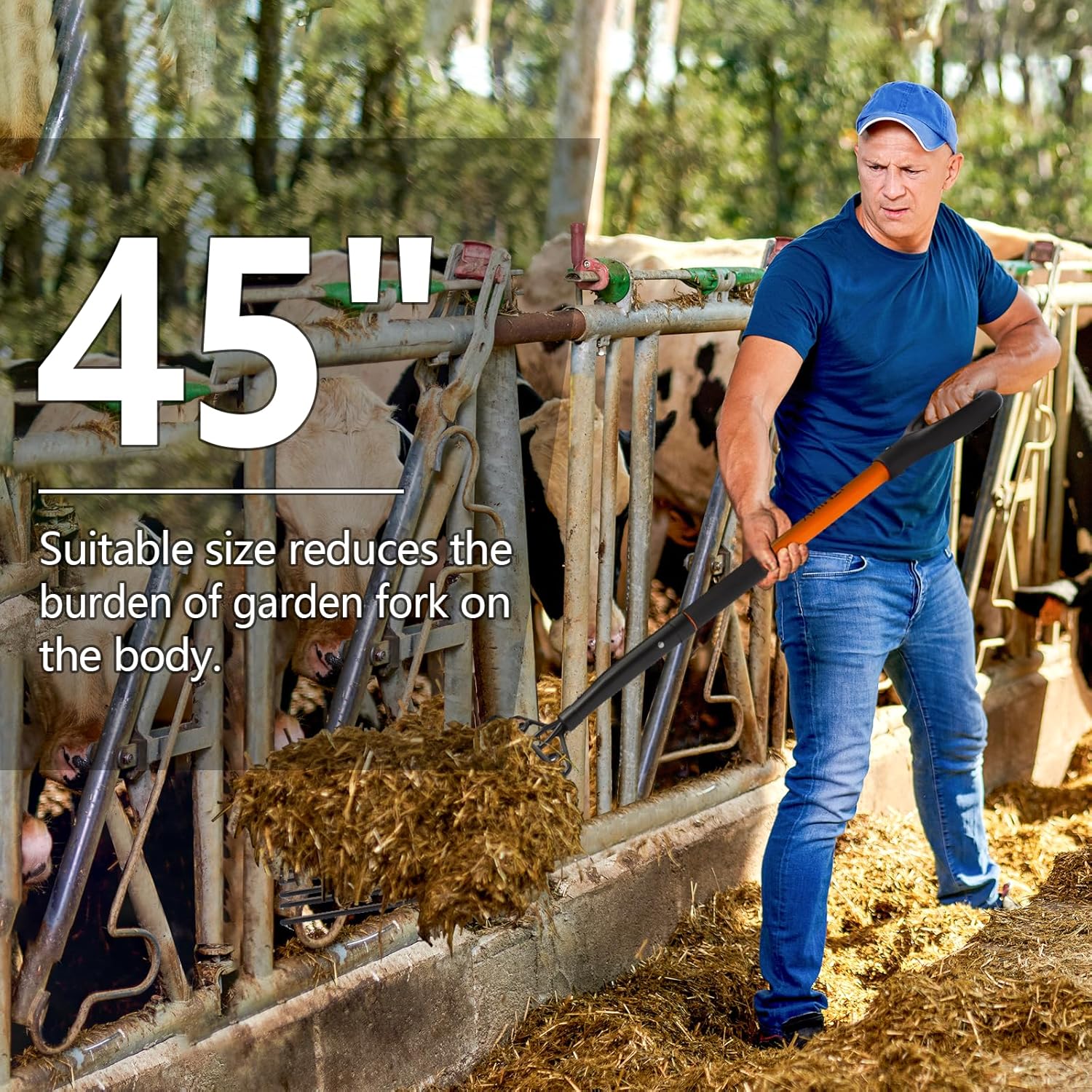 - Scientific Size: The 45-inch manure fork is designed for adults, the reasonable size provides sufficient operating range, effectively reduces the physical burden brought by frequent bending, improves the operating comfort of the pitch fork, and is an ideal assistant for your gardening work.