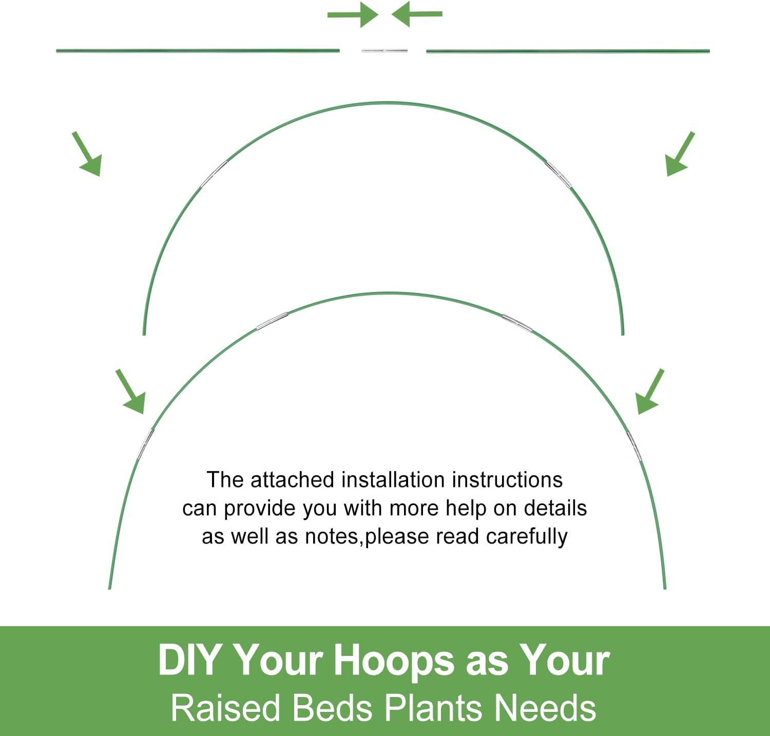 - đ±ăGarden hoops for Raised Bedă: Greenhouse Hoops frame is the best choice for raised flower beds, vegetable gardens, patios. The manual DIY garden hoops grow tunnel kit can be matched with different types of covers to provide adequate protection for your plant seedlings, flowers, tomatoes and other garden plants in any season.