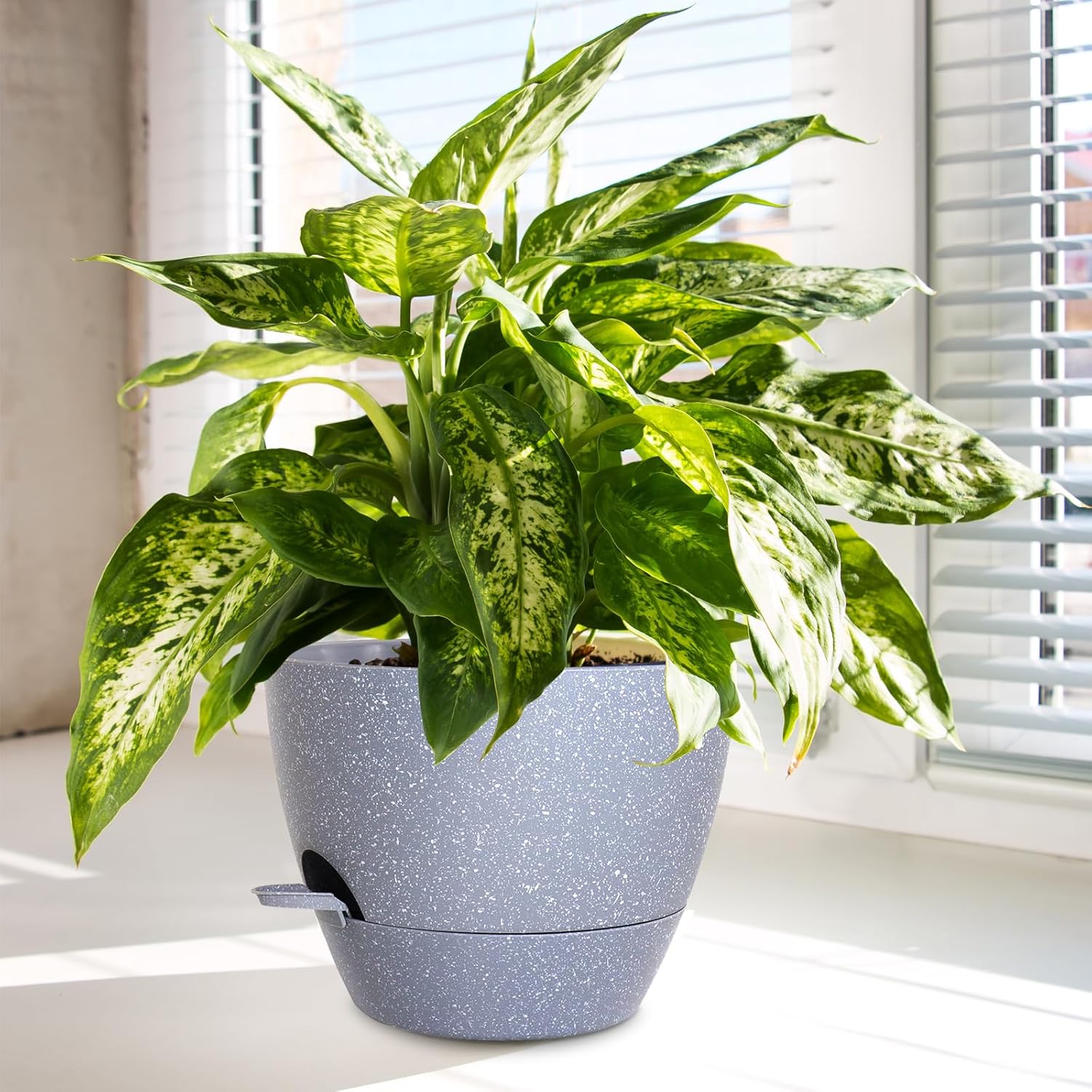 Big Self Watering Pots 12/10/9 inch, Planter, Plant Pots with Mesh Drainage Holes for Indoor Outdoor Garden Plants, Plastic Flower Pots with Removable Deep Reservoir, Speckled Grey