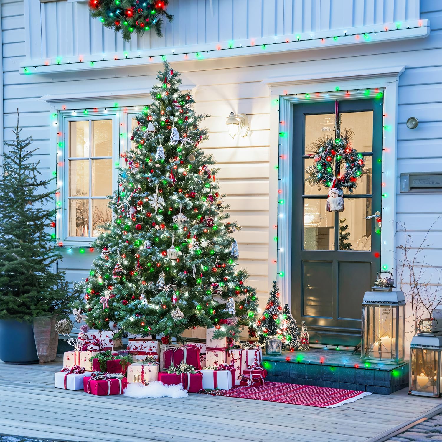 - 【8 Modes & Memory Function】Our red white and green christmas lights have 8 lighting modes(combination, in a wave, sequential, slo glo, chasing/flash, slow fade, twinkle/flash, and steady on). A built-in memory chip saves your last mode setting without having to reset the mode every day.