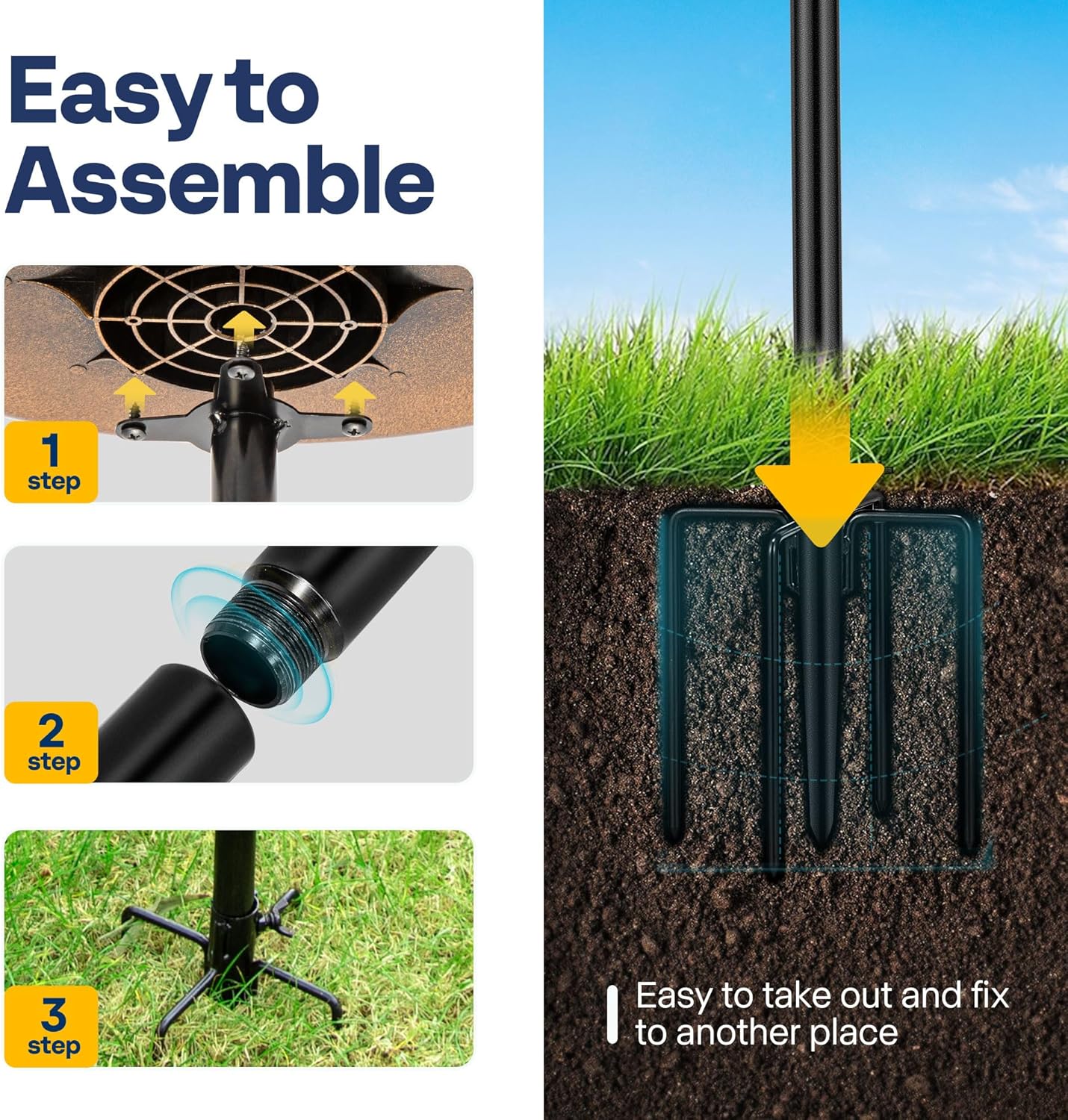 - EASY TO USE: The VIVOHOME 5-pronged bird bath combo is designed with a clear instruction manual, making it easy to put together; Secure the support bar to the base of the five-prong bird bath with a wingnut after tightening it to the basin; For the solar fountain, simply place it in the water, and under direct sunlight, it will automatically spray water; To create different water patterns, connect the nozzle, connections, and fountains in the correct sequence; Four fixing rods secure the pump to prevent unwanted floating and maximize the water spray effect