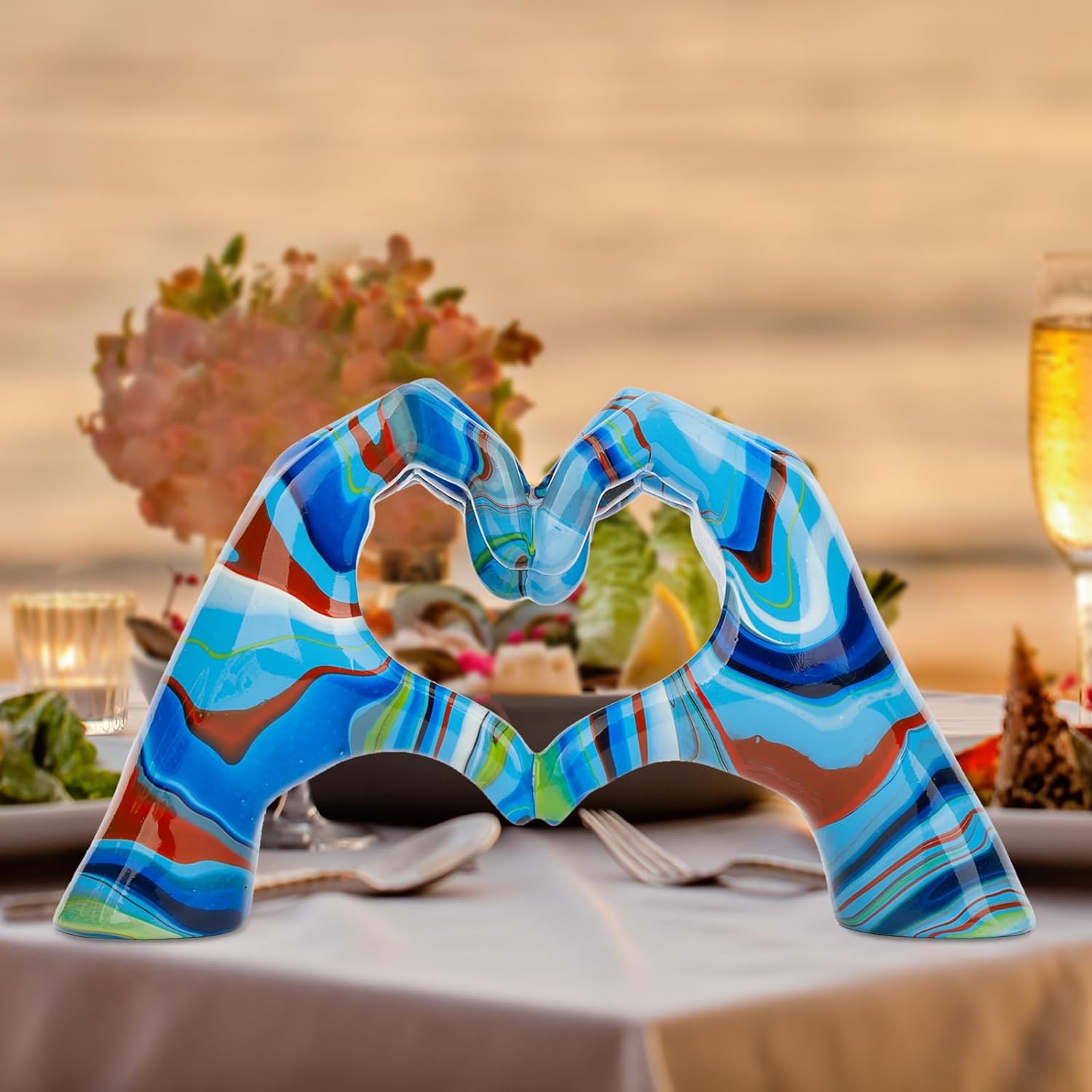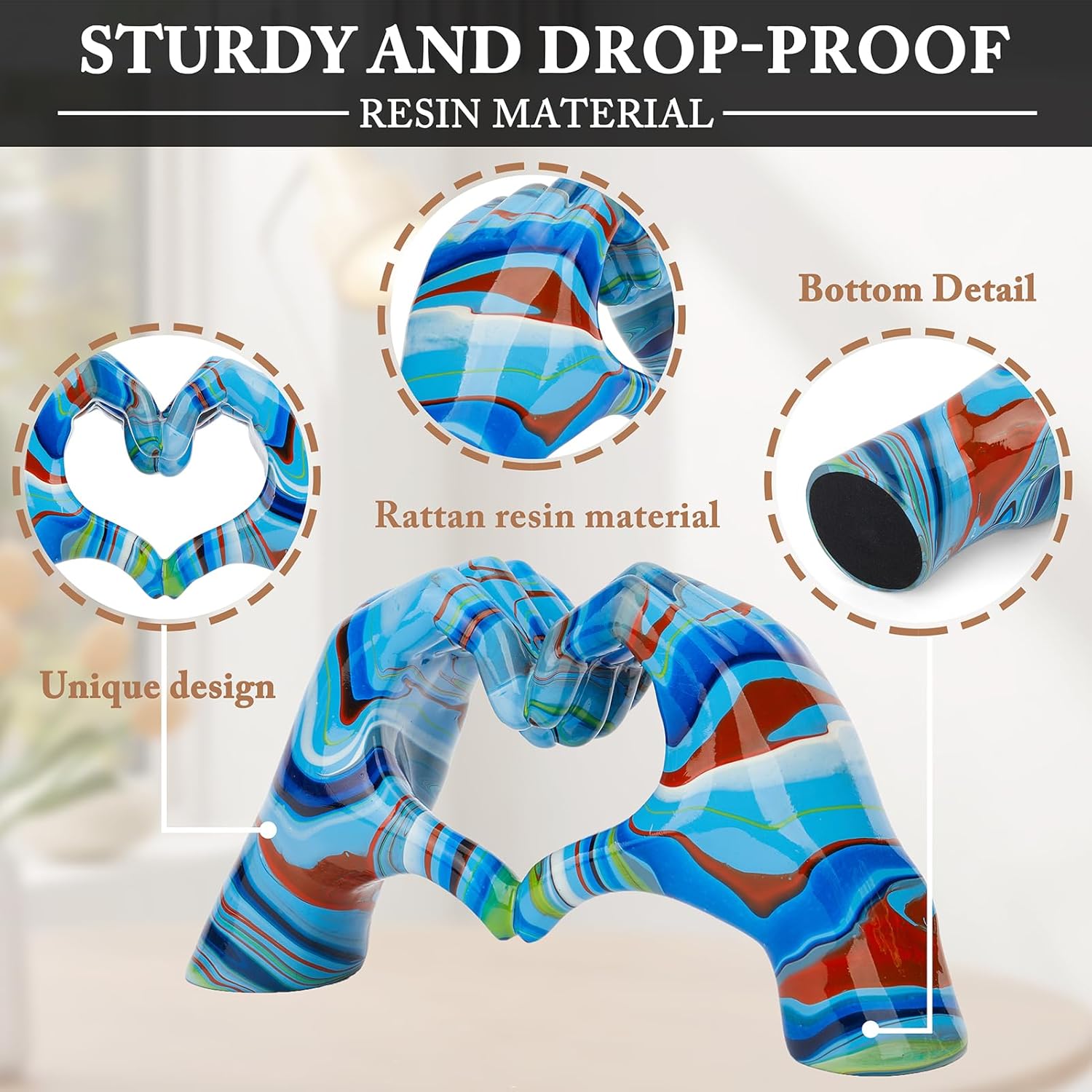 - [HEART HANDED SCULPTURE HOME DECOR]: Hand heart statue adopts sweet love gesture sculpture design; Nordic minimalist style resin handicrafts, love ornaments, modern love sign heart shape finger gesture statue, wedding for couple anniversary couple figurine. It is a whole pendulum and cannot be disassembled. Statue is perfect for home decor, room decoration, bedroom decoration, office decoration, living room decoration, hotel decoration, apartment decoration.