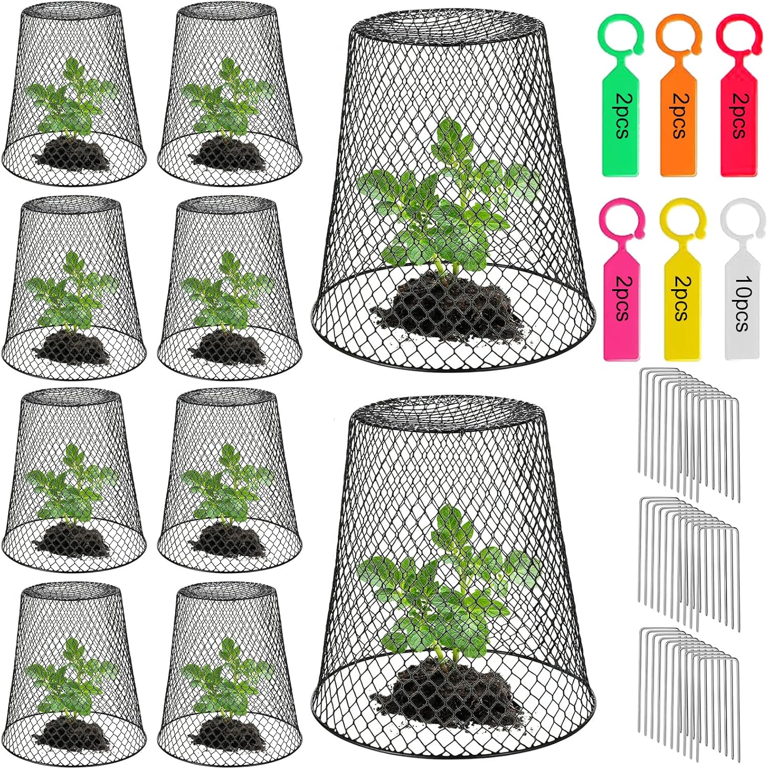 Chicken Wire Cloche Plant Covers - 20 Pack Garden Plant Cloche Metal Heavy Duty Plant Protectors from Animals for Keeping Bunnies Chicken Squirrels Birds Other Out (Black)