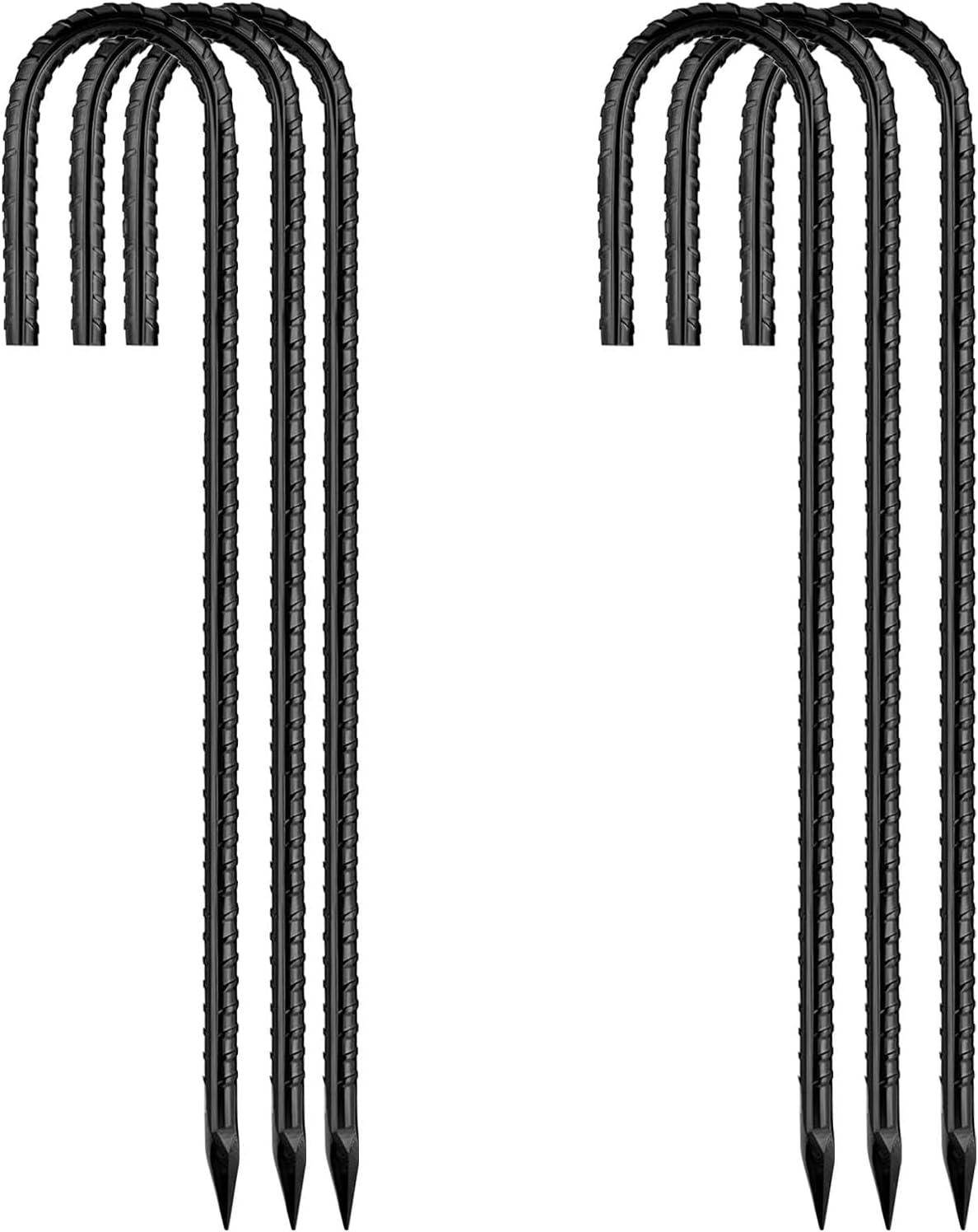 Ground-Stakes-Heavy-Duty-12 inch, J-Hook Rebar Stakes Black Coated Anti-Rust 6pcs Garden Stakes Metal Ground Anchors for Garden Dog Fence Chicken Coop Christmas Decorations Deer Fence