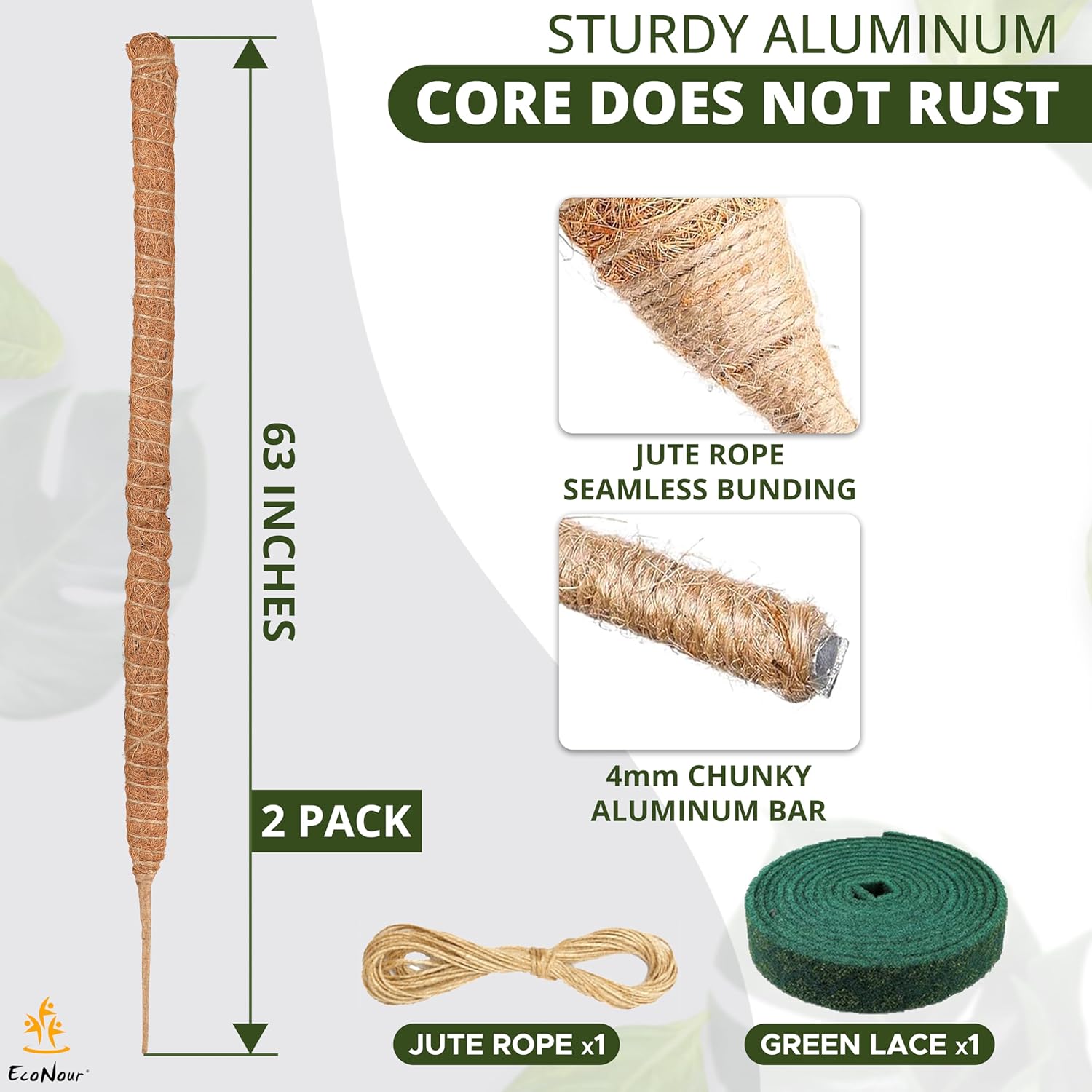 EcoNour Tall Moss Pole for Plants (2-Pack) 63-Inch | Large Monstera Plant Support for Climbing and Growth | Elevate Your Indoor Garden | Tall Plant Support for Indoor Potted Plants to Grow Upwards