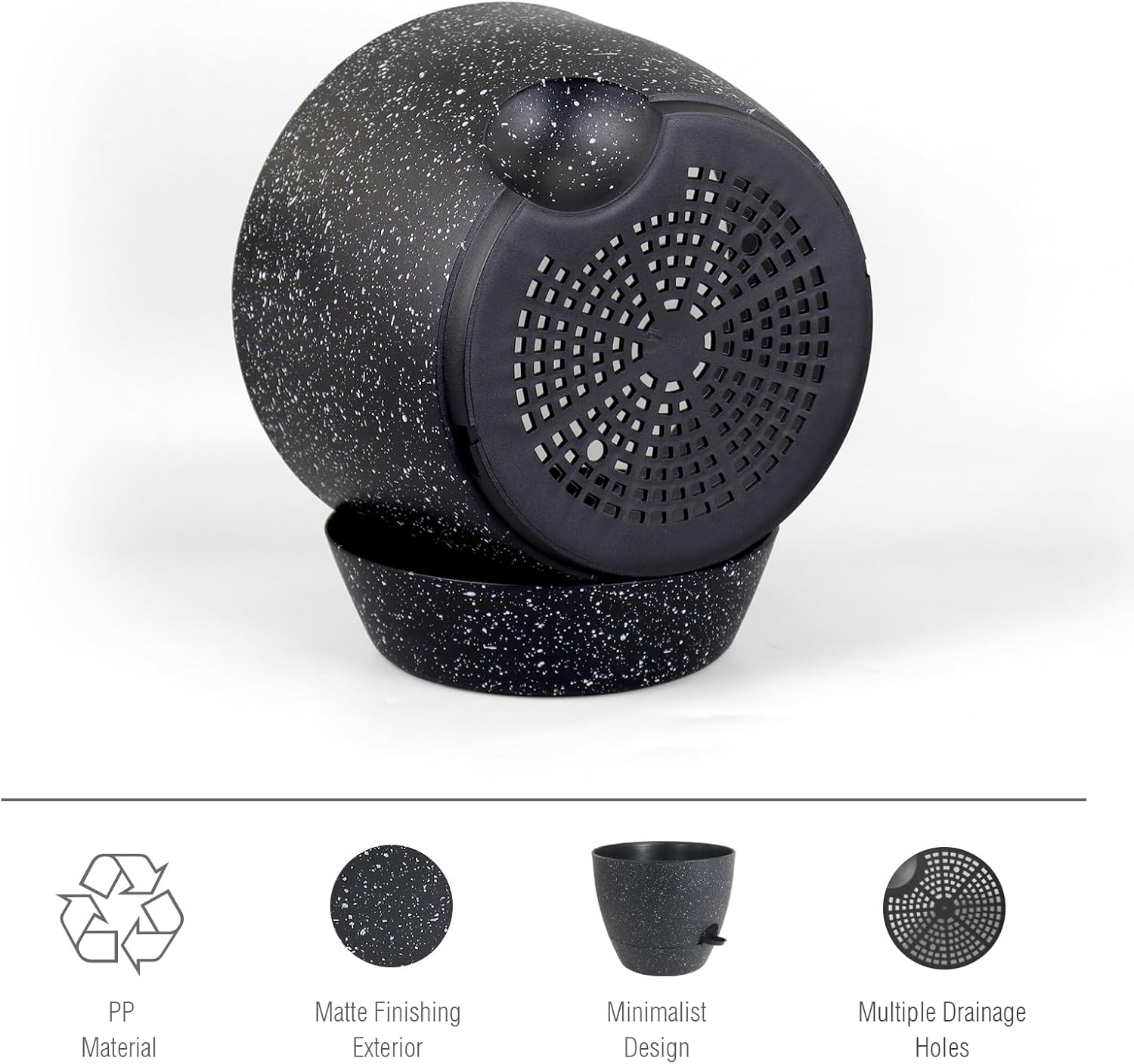 12 inch Large Self Watering Pots for Indoor Outdoor Plants, Flower Plant Pots with Mesh Drainage Holes for Garden House Plants, Plastic Planters with Reservoir for Home Decor, Speckled Black
