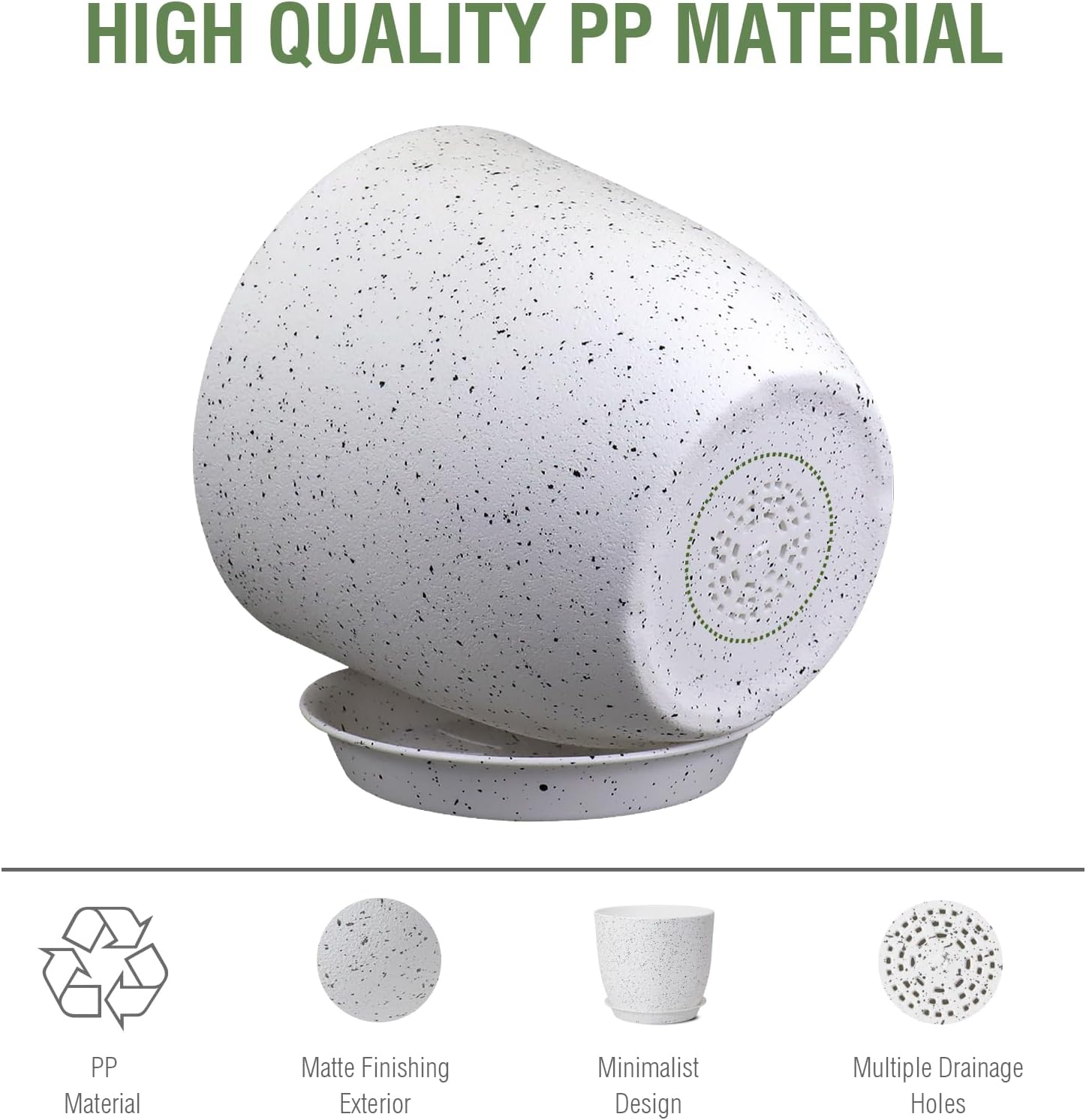Plant Pots 12 inch, Plastic Planters with Drainage Holes and Saucers, Large Flower Pots for Indoor Outdoor Plants, Modern Decorative Pots for Garden House Plants, Speckled White