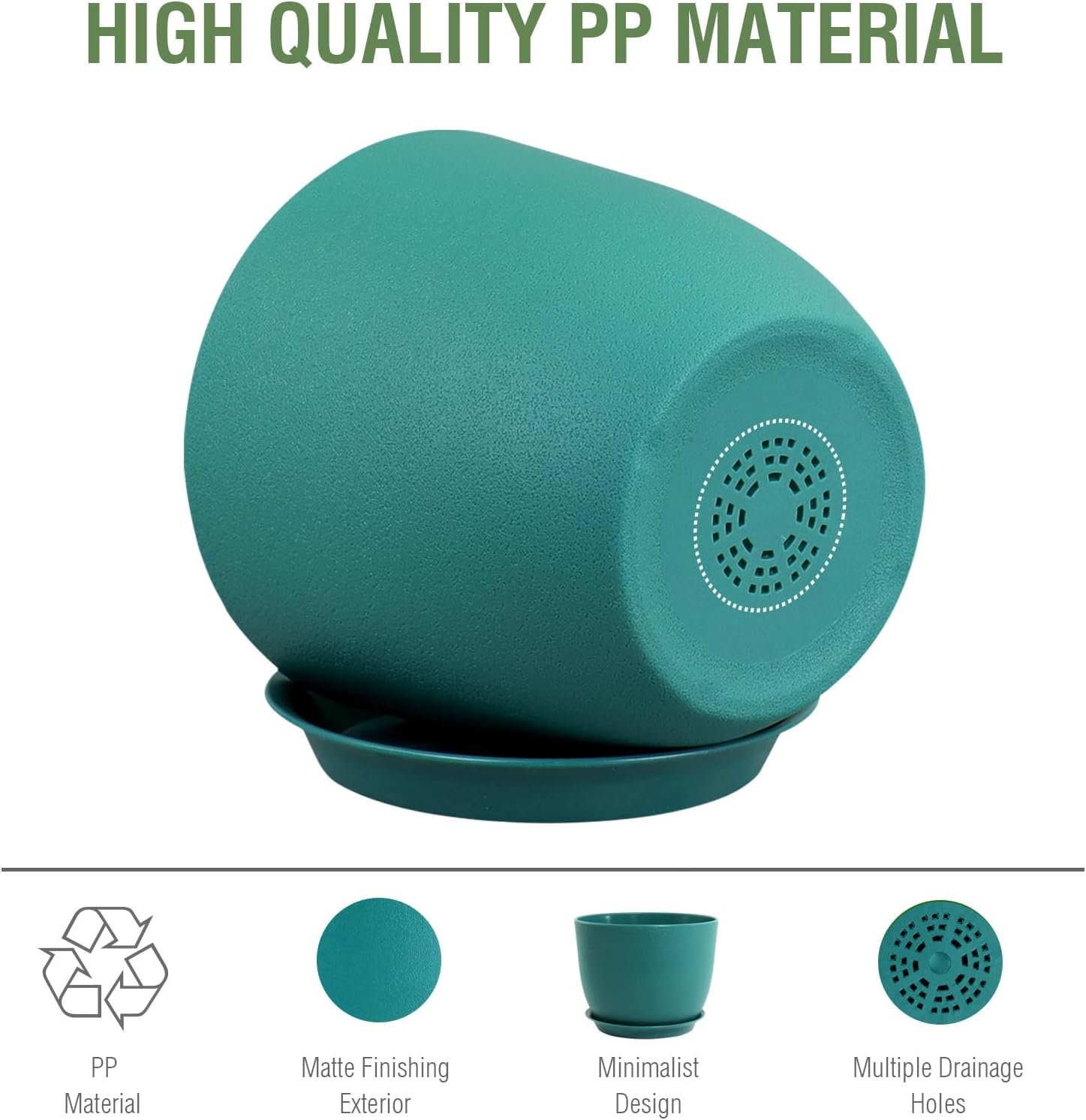 Plant Pots 12 inch, Plastic Planters with Drainage Holes and Saucers, Large Flower Pots for Indoor Outdoor Plants, Modern Decorative Pots for Garden House Plants, Blue Green