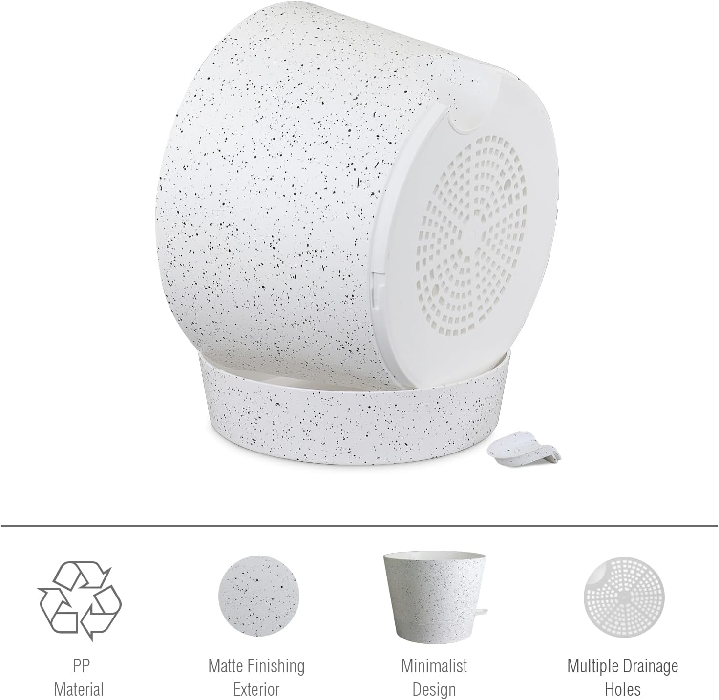 12 inch Large Self Watering Pots, Plant Pots with Mesh Drainage Holes for Indoor Outdoor Plants, Plastic Planters with Deep Reservoir for Garden House Flower Plants, Speckled White
