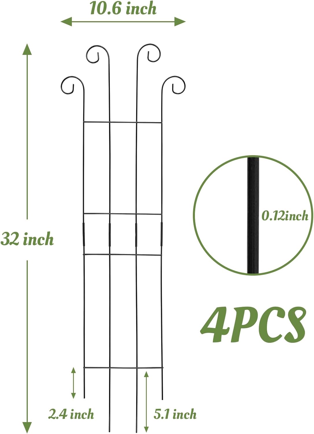 - 【Specification】-The set includes 4 independent plant trellis, The dimensions is 32 inches Tall x 10.6 inches Wide.
