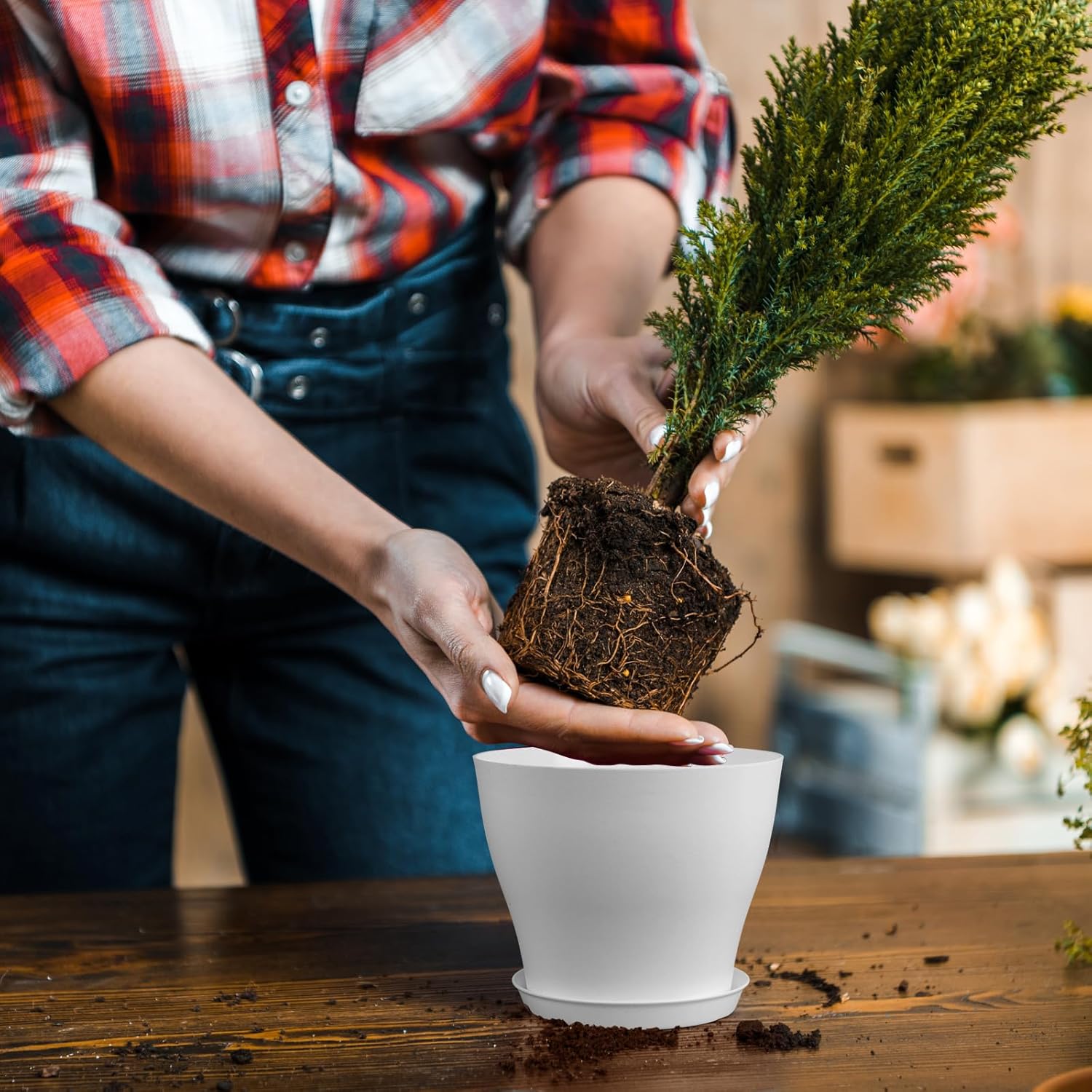 - 【Lightweight and Durable】Crafted from high-quality plastic, these flower pots are both lightweight and incredibly durable. They are designed to withstand everyday wear and tear, making them a reliable choice that won’t easily break or crack, even with regular use.