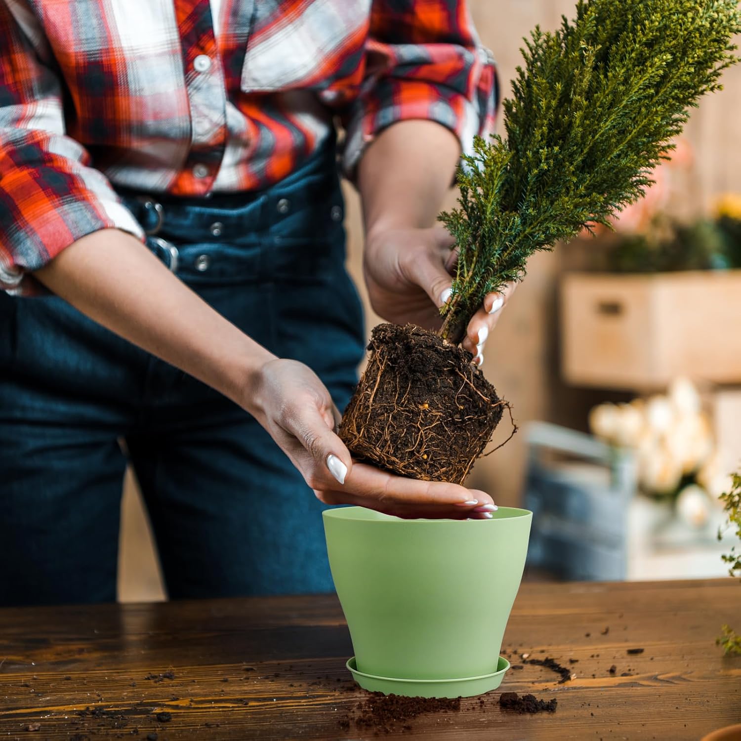 - 【Lightweight and Durable】Crafted from high-quality plastic, these flower pots are both lightweight and incredibly durable. They are designed to withstand everyday wear and tear, making them a reliable choice that won’t easily break or crack, even with regular use.