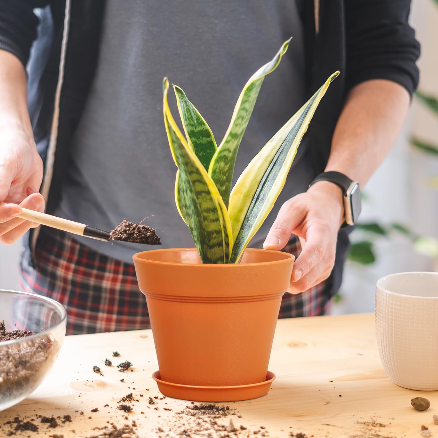 6 inch Plastic Nursery Pots, 16 Pack Plant Pots for Indoor Outdoor Plants, Flower Pots with Drainage Holes and Saucers, Decorative Seedling Starter Planters for House Plants, Terracotta