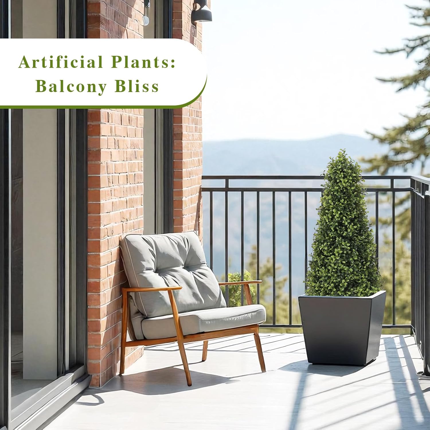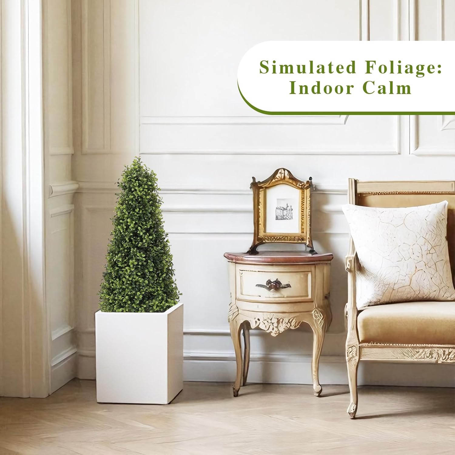3ft Artificial Boxwood Topiary Trees (Set of 2) - UV Resistant Faux Plants Outdoor, Realistic 36in Fake Cone Bushes and Shrubs for Front Porch, Planter, Patio - Low Maintenance & Evergreen