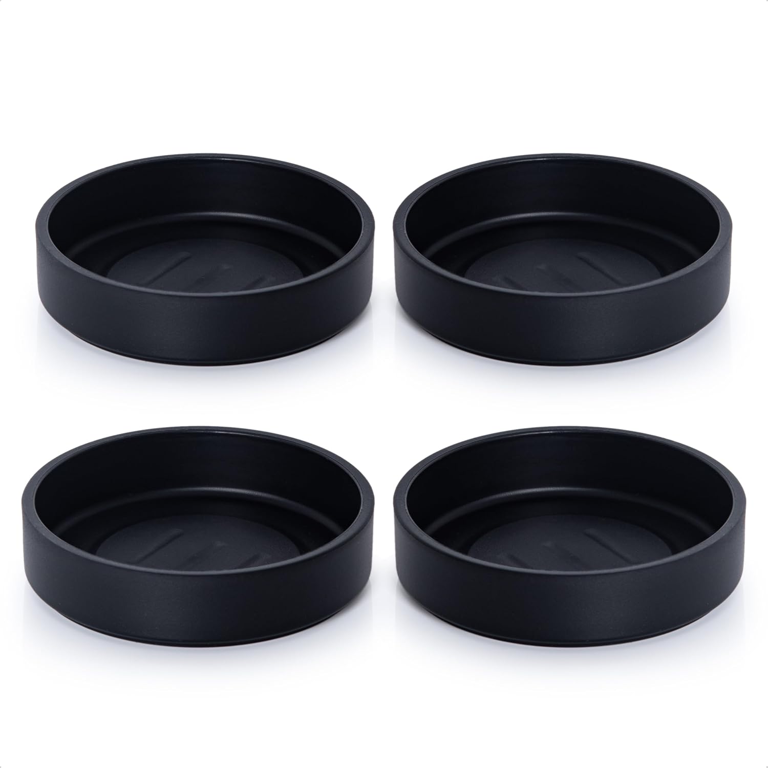 Phoenix Vine 4 Inch Plastic Plant Saucer Water Drip Tray, Heavy Sturdy Round Plant Drainage Tray for Indoors Outdoor, Set of 4, Matte Black, 21-TY-4B-4