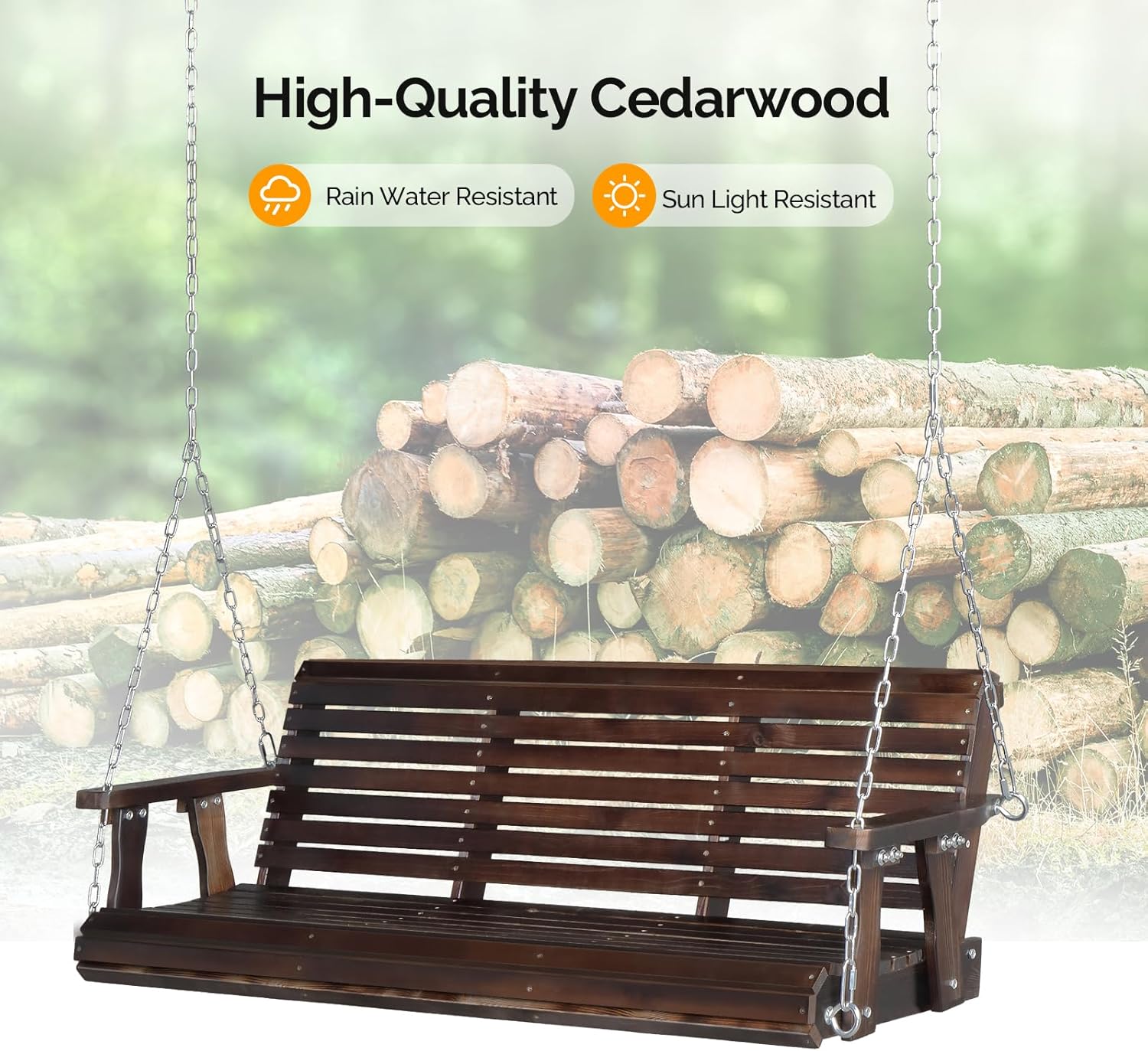 - Well-Coated Surface - Compared with other swings with raw wood material, our porch swing chair outdoor are more durable with its well-finished surface