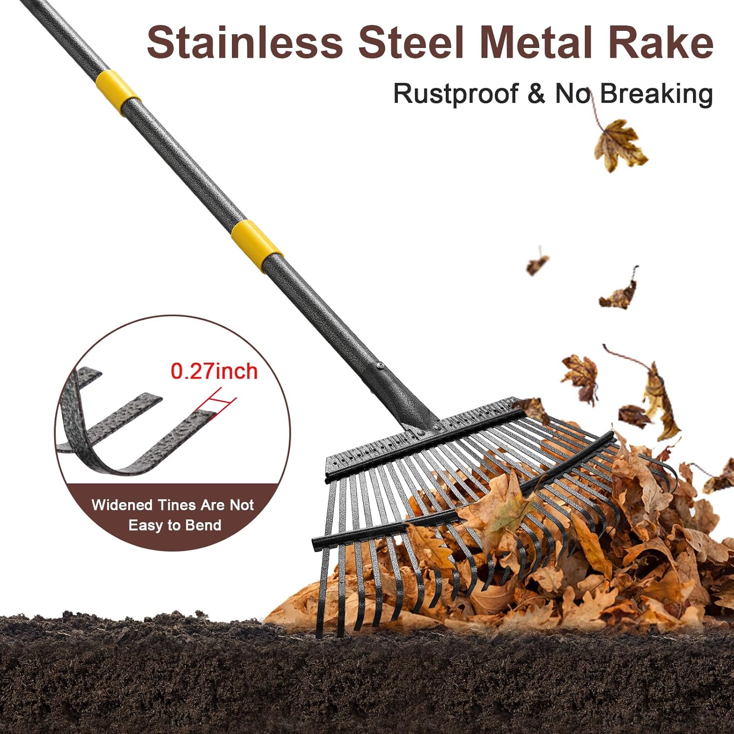 - Strong and Heavy Duty: Heavy duty leaf rake. The handle is made of high quality stainless steel and metal iron rake head, it won't fall, damage, break or corrode while working on your lawn and garden.
