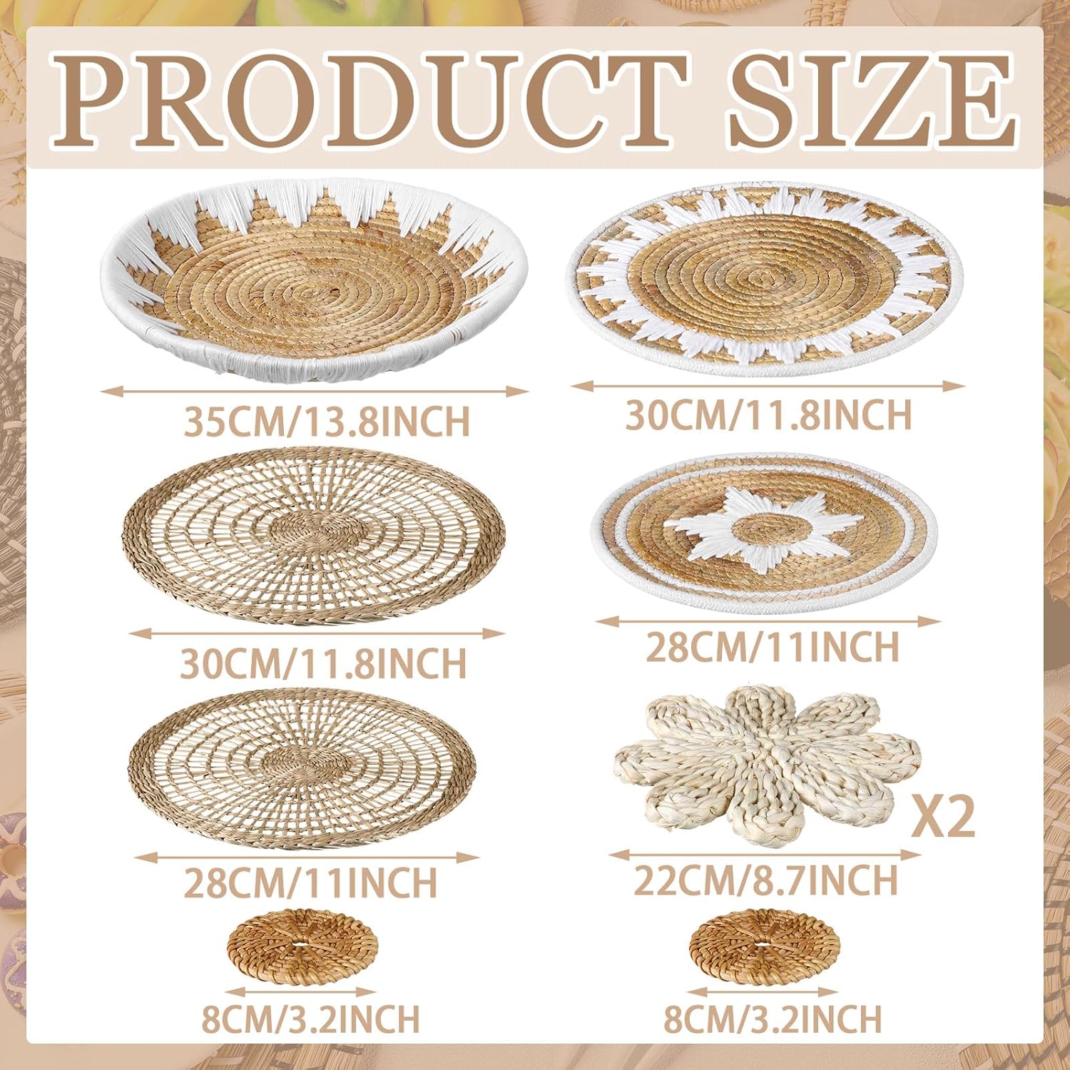 - Abundant to Choose: you will receive 8 pieces of woven wall baskets in different styles, the sizes vary from 7.8 inch to 12.6 inch, suitable for wall decorating use, the quantity and sizes are enough for your daily needs and replacement demands, you can mix and match them as you need, making your furnishing styles more attractive