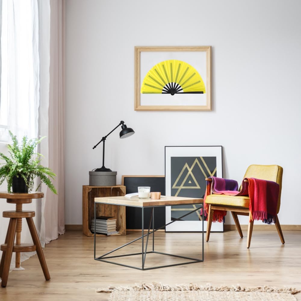 4 Pack Large Folding Hand Fan, Plastic Hand Held Folding Fans Chinese Kung Fu Hand Fan Decorative Folding Fans for Dance, Performance, Festival or Home Decorations(Yellow)