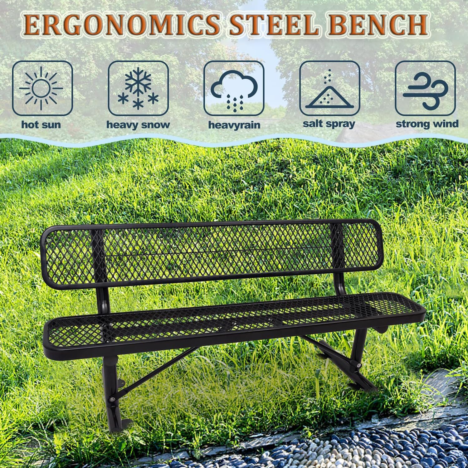 4/6/8 Feet Park Bench for Outside Heavy Duty Metal, Garden Benches Outdoor Bench with Backrest & Portable Frame, for Shopping Malls Stores Parks Patios Decks, Black