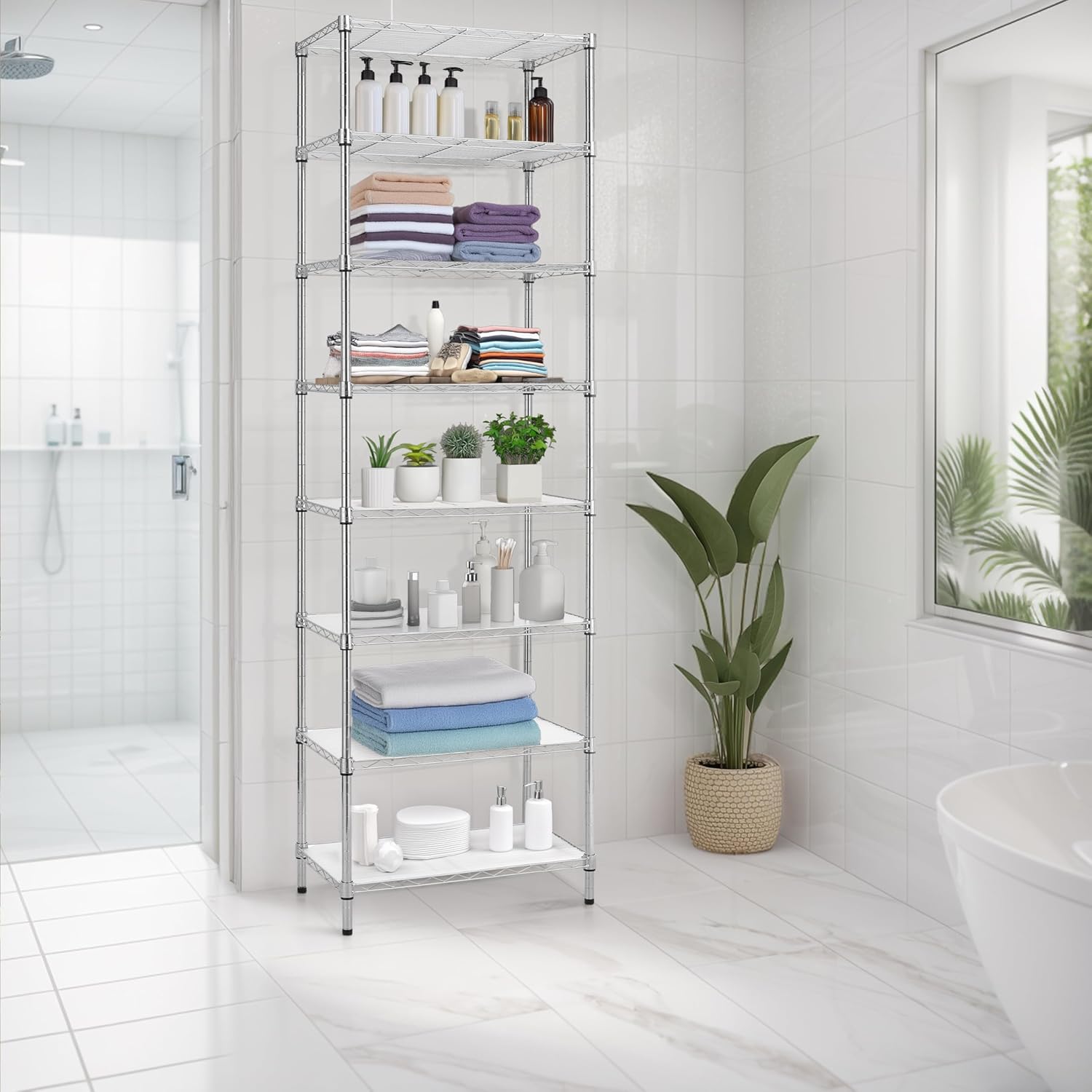 Finnhomy 8-Tier Wire Shelving Unit Adjustable Steel Wire Rack Shelving, 80.7 Inches Height 8 Shelves Metal Storage Rack, Pantry Shelves for Storage with PE mat, NSF Certified, Chrome