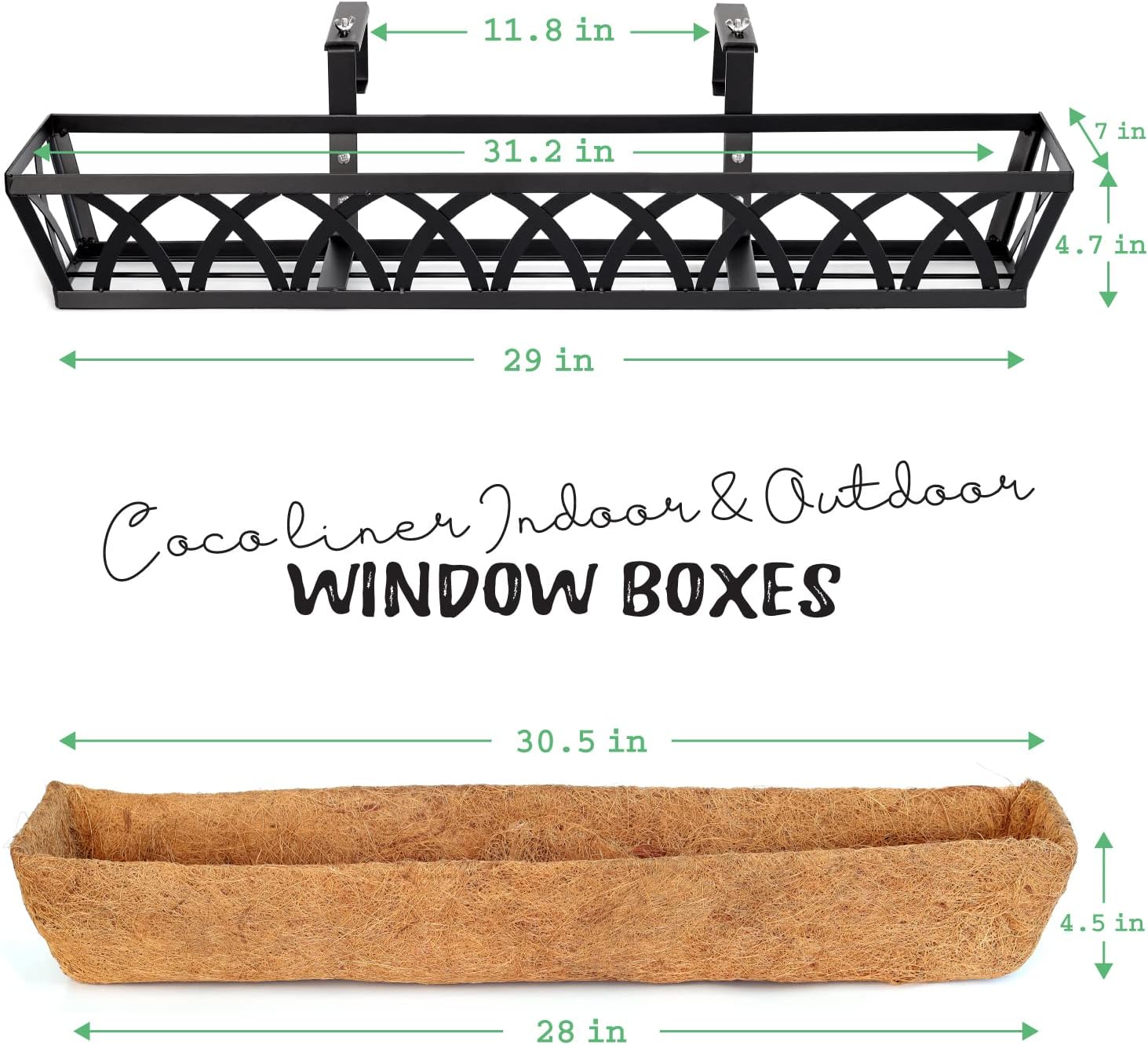 Window Box Railing, 32 Inch Black Metal Hanging Flower Planter Basket with Coco Liner for Outdoor Balcony Porch Fence Patio for Home, Office and Hotel (Black - 4 Pcs/Set)