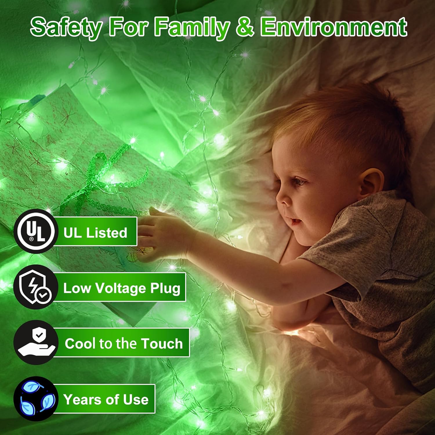 - LED Cheistmas Lights for Peace of Mind: Designed with low voltage, these LED Christmas lights are safe and energy-efficient, perfect for long-term use indoors or outdoors. They stay cool to the touch, making them ideal for homes with kids and pets. Enjoy a bright, glowing holiday display without the worry of high electricity bills or overheating, keeping your celebrations safe and sustainable