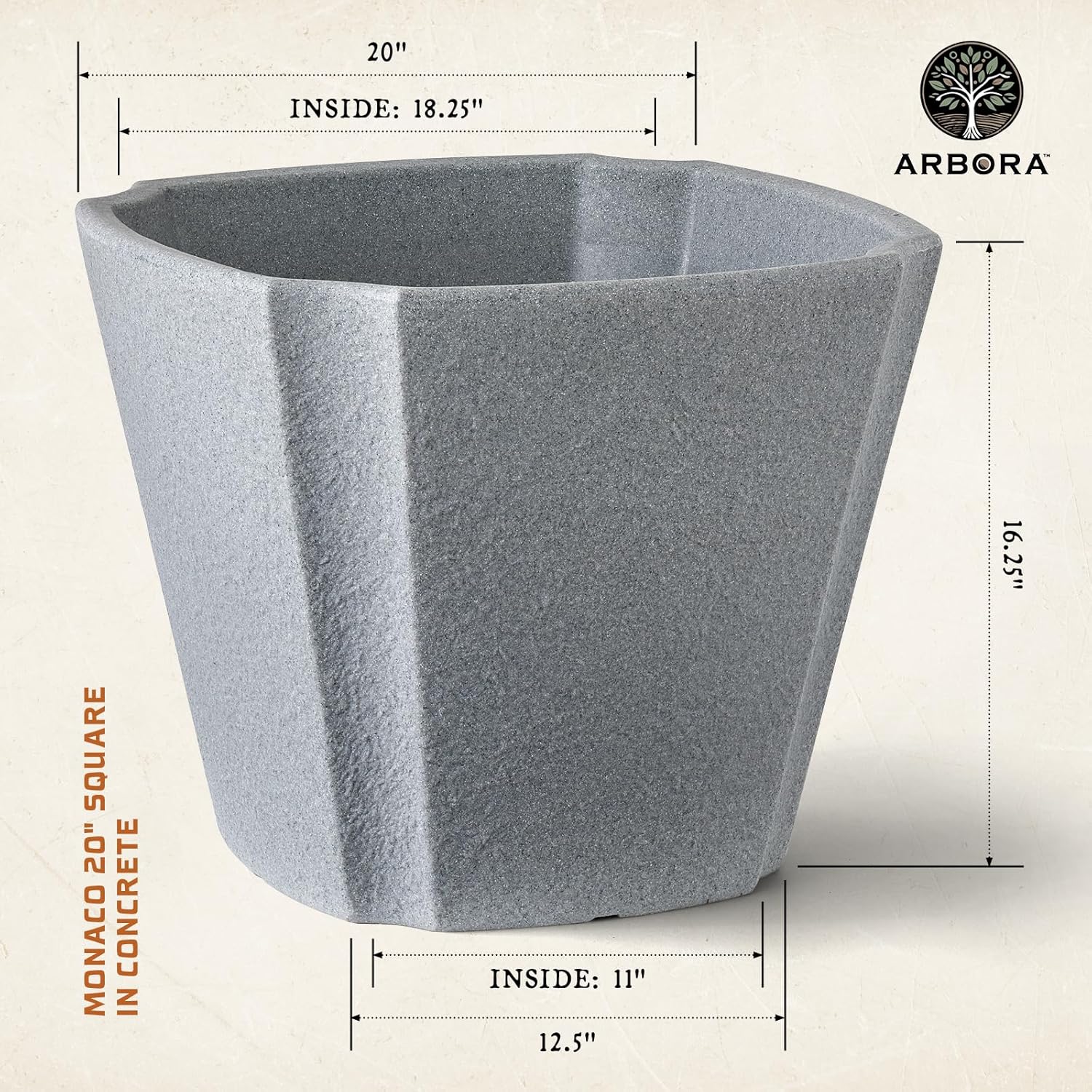- Premium Polyresin Pots - Elevate your space with the Arbora 20" Monaco Square decorative planter, with a natural textured surface and concrete gray finish for a touch of sophistication. Ideal for both outdoor gardens and indoor living areas.