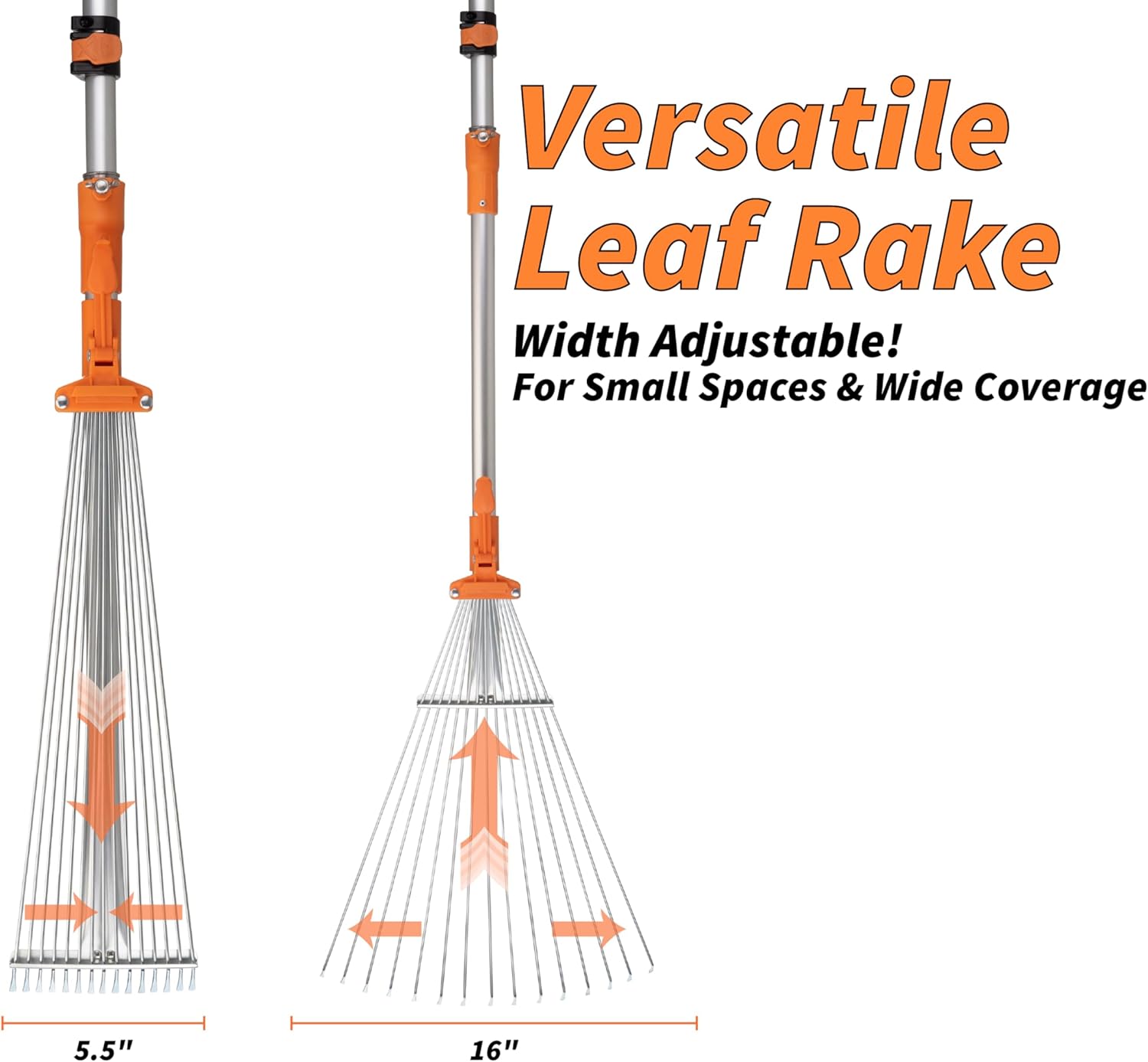 - BUILT TO WORK, DESIGNED TO LAST » Unlike flimsy collapsible leaf rakes, the EXTEND-A-REACH folding rake stays sturdy with its improved locking mechanism and upper-positioned latch, preventing collapse during use. The ergonomic handle ensures a comfortable grip, while the adjustable length lets you reach any task with ease. Whether tackling stubborn wet leaves or removing clogs from hard-to-reach areas, this tool makes the job easier than ever.