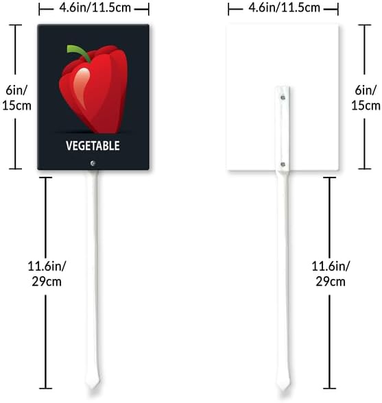 - [Extra large size] The plant tags total height 17.6", Width 4.6“ , Thickness is 0.07". The extra large size of the label makes the graphics are easy to read and attractive. Ther are thick, tall, and sturdy, and go into the ground easily