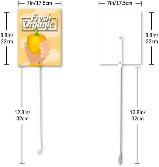 - [Extra large size] The plant tags total height 21.6", Width 7“ , Thickness is 0.07". The extra large size of the label makes the graphics are easy to read and attractive. Ther are thick, tall, and sturdy, and go into the ground easily