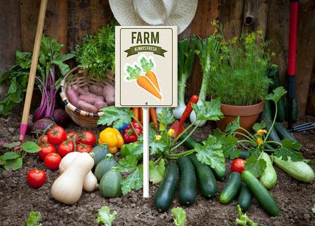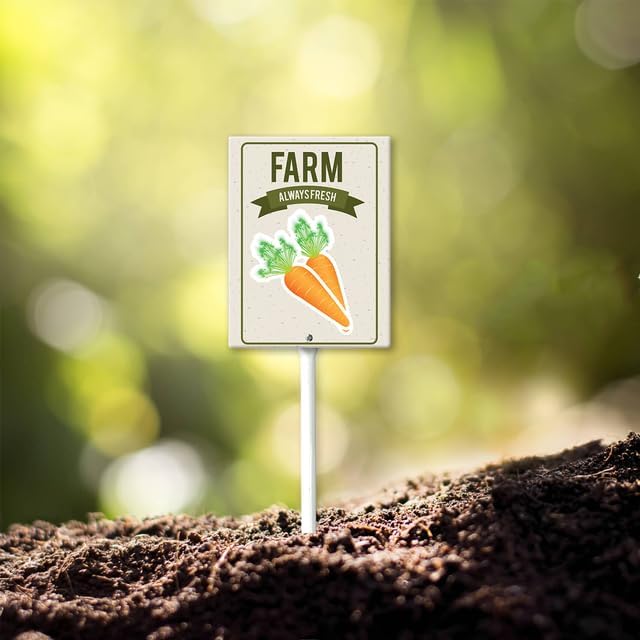 - [Extra large size] The plant tags total height 21.6", Width 7“ , Thickness is 0.07". The extra large size of the label makes the graphics are easy to read and attractive. Ther are thick, tall, and sturdy, and go into the ground easily
