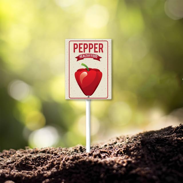 - [Extra large size] The plant tags total height 17.6", Width 4.6“ , Thickness is 0.07". The extra large size of the label makes the graphics are easy to read and attractive. Ther are thick, tall, and sturdy, and go into the ground easily