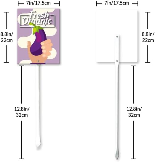 - [Extra large size] The plant tags total height 21.6", Width 7“ , Thickness is 0.07". The extra large size of the label makes the graphics are easy to read and attractive. Ther are thick, tall, and sturdy, and go into the ground easily