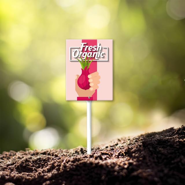 - [Extra large size] The plant tags total height 21.6", Width 7“ , Thickness is 0.07". The extra large size of the label makes the graphics are easy to read and attractive. Ther are thick, tall, and sturdy, and go into the ground easily