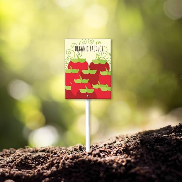 - [Extra large size] The plant tags total height 17.6", Width 4.6“ , Thickness is 0.07". The extra large size of the label makes the graphics are easy to read and attractive. Ther are thick, tall, and sturdy, and go into the ground easily