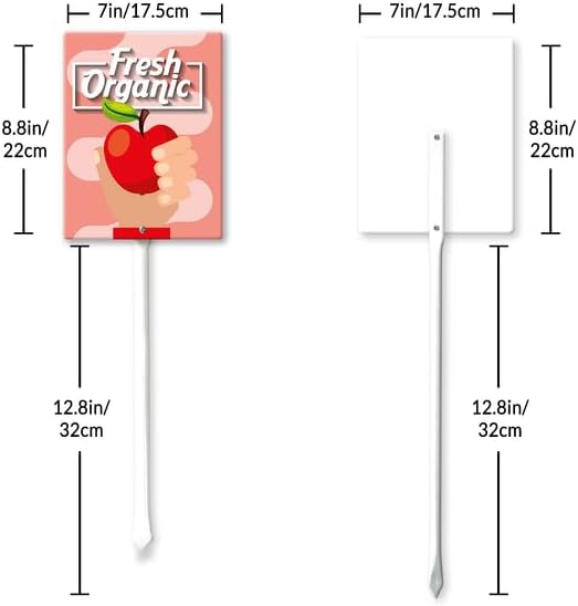 - [Extra large size] The plant tags total height 21.6", Width 7“ , Thickness is 0.07". The extra large size of the label makes the graphics are easy to read and attractive. Ther are thick, tall, and sturdy, and go into the ground easily