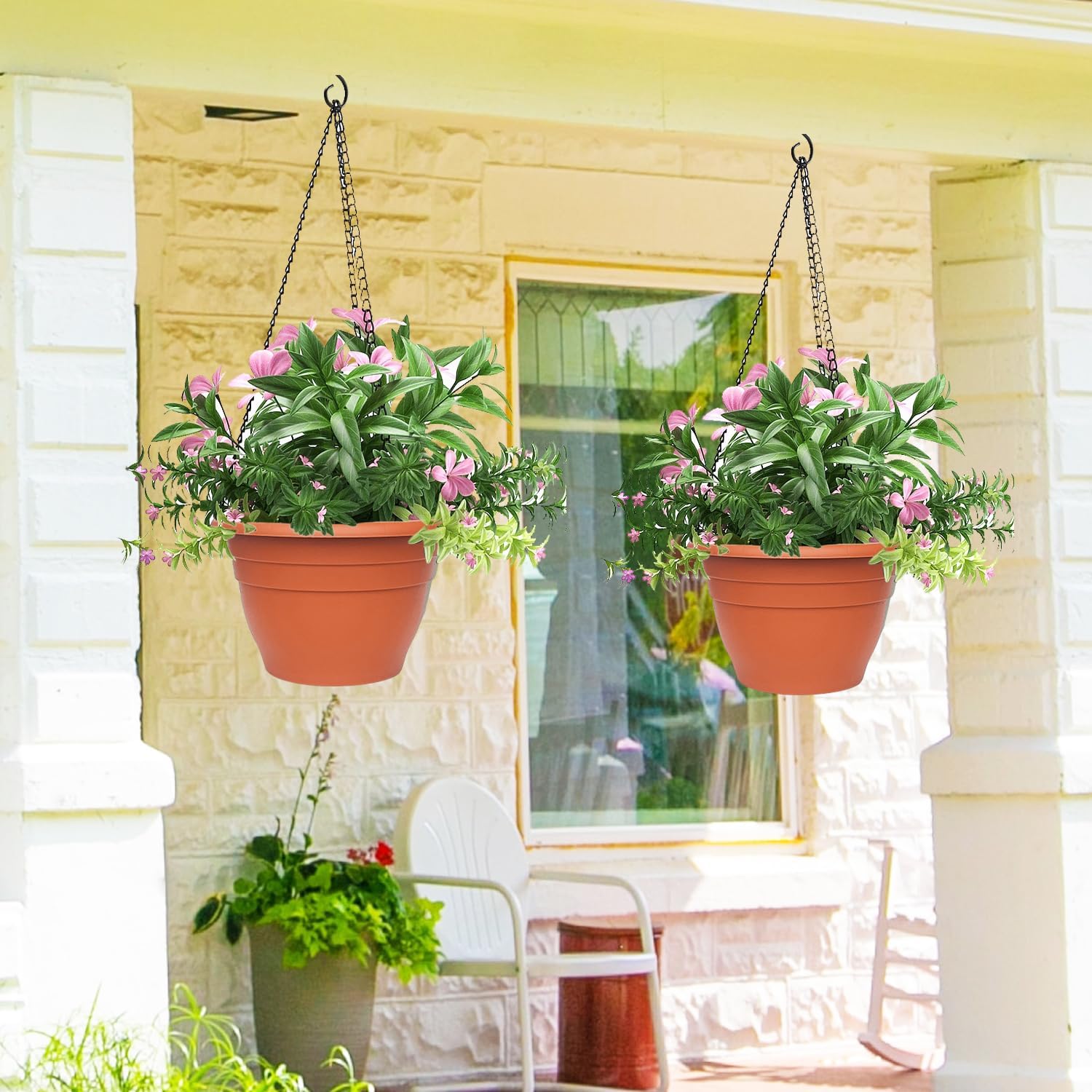 Plant Pots Set of 5, 10" Outside Diameter Flower Pots, 8.5" Inner Diameter Plant Planters with Drainage Hole, Durable Garden Pots Perfect for Indoor & Outdoor Plant Planting, Decor(Pottery Red)