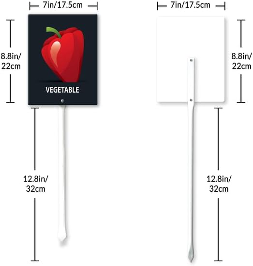- [Extra large size] The plant tags total height 21.6", Width 7“ , Thickness is 0.07". The extra large size of the label makes the graphics are easy to read and attractive. Ther are thick, tall, and sturdy, and go into the ground easily