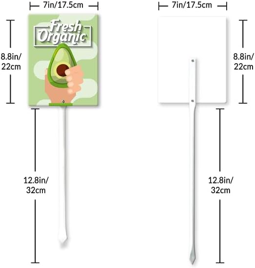 - [Extra large size] The plant tags total height 21.6", Width 7“ , Thickness is 0.07". The extra large size of the label makes the graphics are easy to read and attractive. Ther are thick, tall, and sturdy, and go into the ground easily