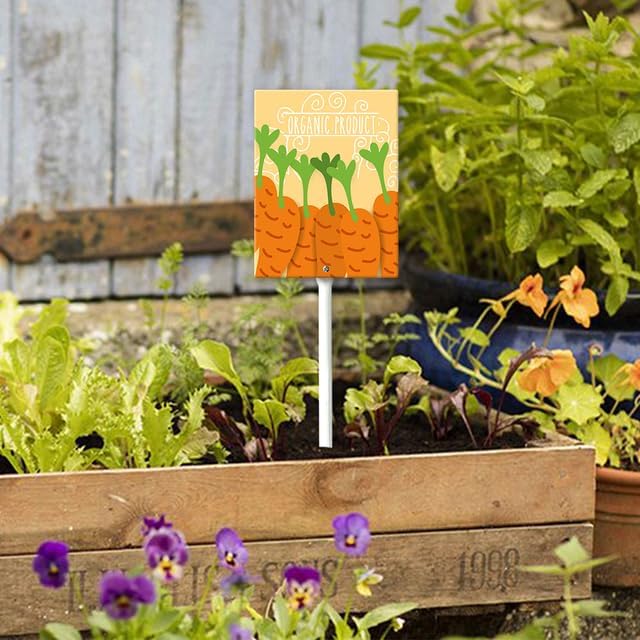 - [Extra large size] The plant tags total height 17.6", Width 4.6“ , Thickness is 0.07". The extra large size of the label makes the graphics are easy to read and attractive. Ther are thick, tall, and sturdy, and go into the ground easily