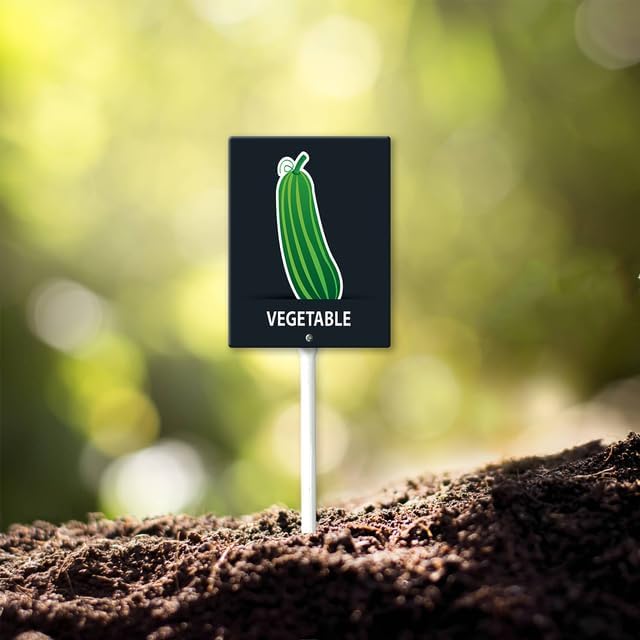 - [Extra large size] The plant tags total height 21.6", Width 7“ , Thickness is 0.07". The extra large size of the label makes the graphics are easy to read and attractive. Ther are thick, tall, and sturdy, and go into the ground easily