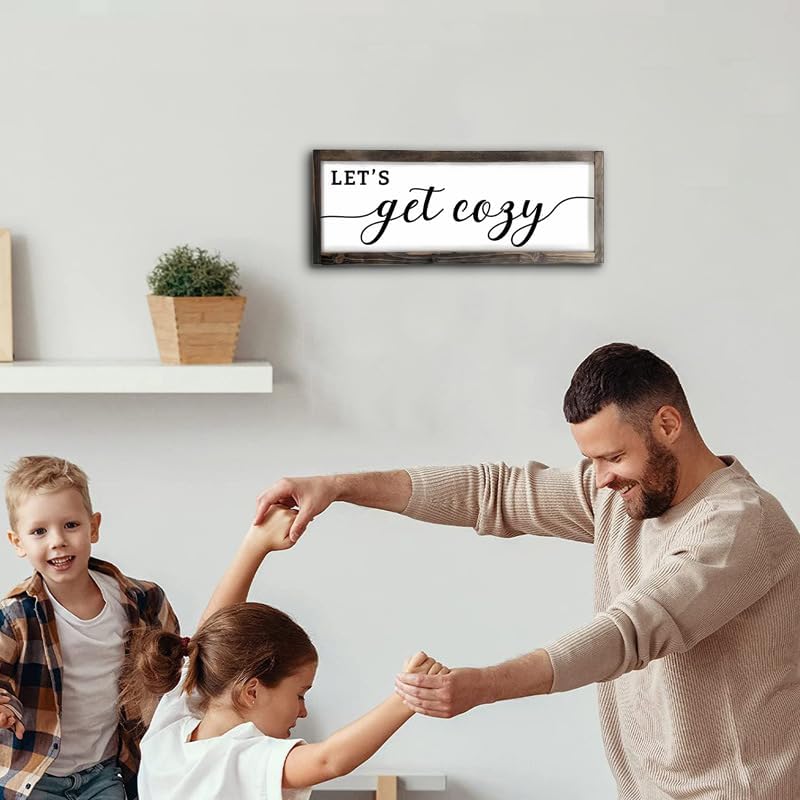 Dazingart Let's Get Cozy Sign, Farmhouse Bedroom Wall Art Decor, Framed Wood Sign for Housewarming Gift (Let's Get Cozy)