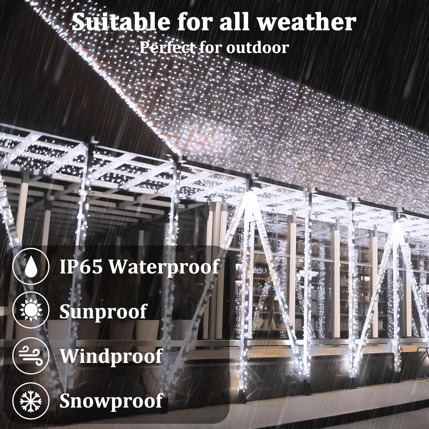 - Widely Used Solar Lights for Outdoor Christmas Decorations: This solar patio lights is a great choice for Porch, Roof, Tree, Backyard, Deck, Barbecue, Umbrella, Fence, Pergola, Bistro, Restaurant, Hotel, Commercial building, Shopping Center, Dinner, Birthday, Christmas, New Year Party and more.