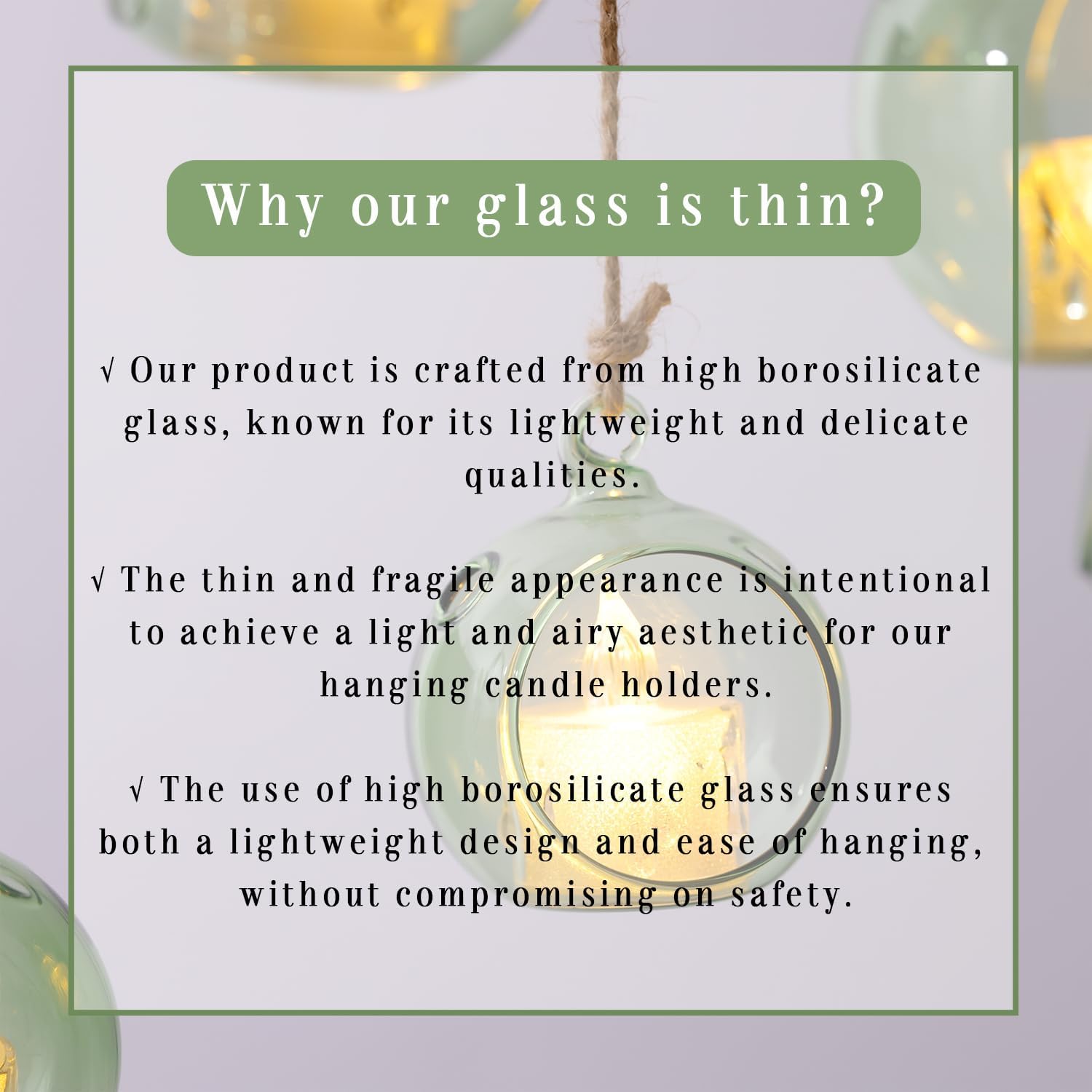 - Safety Note: To ensure the safety and longevity of these glass orbs, we strongly advocate for the use of flameless candles instead of real candles.Enjoy the ambient lighting worry-free and with utmost safety.