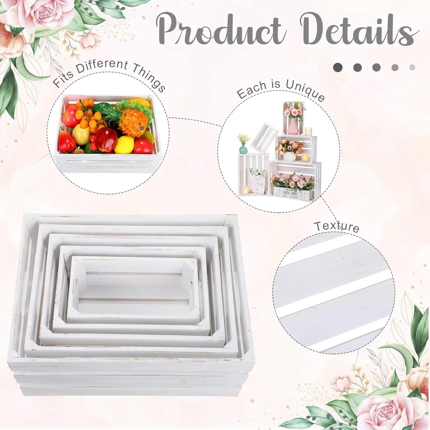- Practical Handles and Nesting Design: the nesting design of these farmhouse wood crate boxes adds to their usefulness, allowing for easy and efficient storage when they're not in use; The inclusion of handles makes them convenient to maneuver around, fitting into your space seamlessly; These crates are a smart and versatile choice, offering practicality and storage optimization