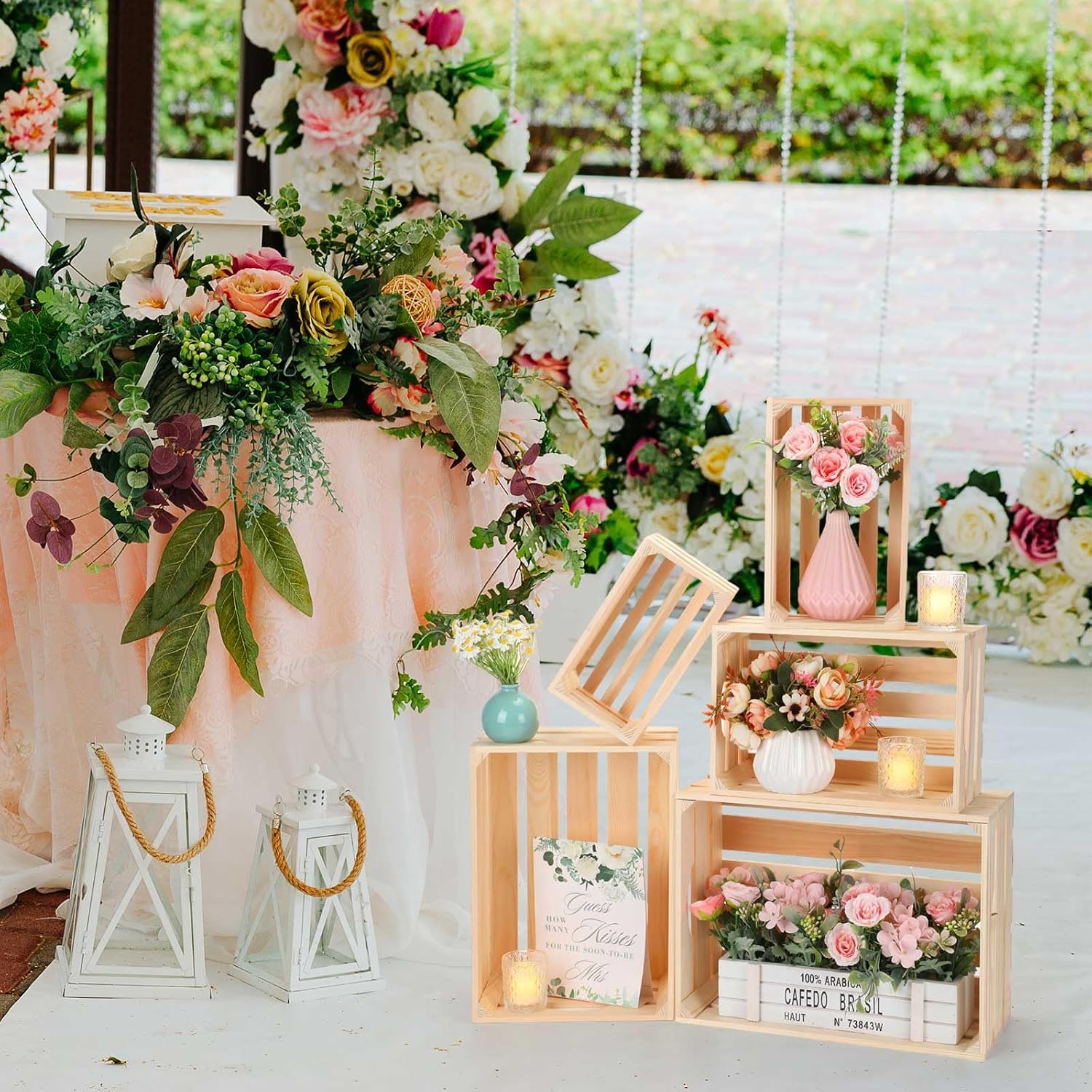 - Versatile Functionality: these stackable crates aren't just delightful in appearance; They're also efficient in function; Whether it's a wedding or just everyday home storage, these crates can adapt to any setting; Their universal charm fits into any room or occasion in your house, conveniently satisfying your decoration and storage requirements