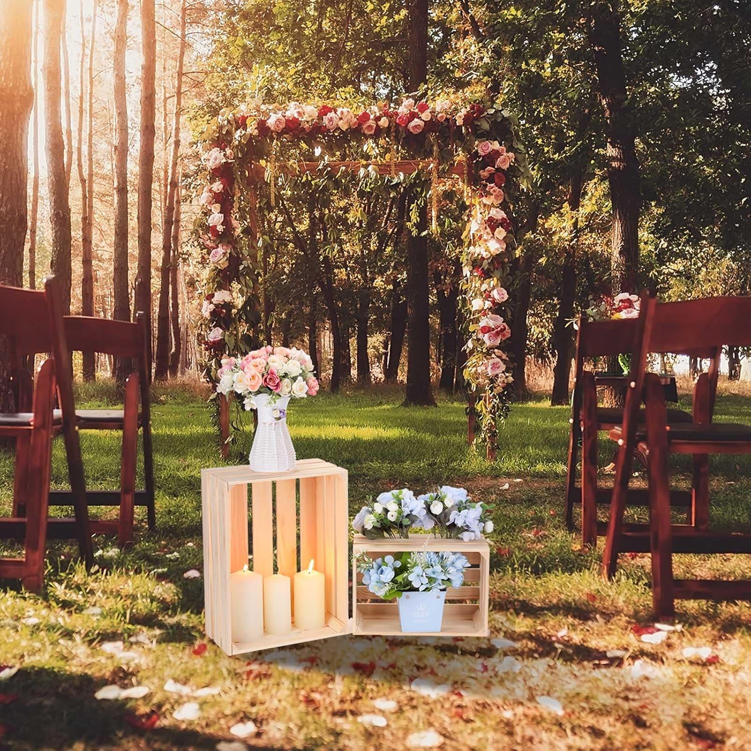 - Beautiful Rustic Appeal: constructed from quality pine, these 5 decorative wooden crates are a stunning addition to any event or decoration style; Ideal for rustic weddings, Christmas parties, they can effortlessly accommodate decorations like flowers, champagne bottles, or picture frames, further enhancing their appeal; The natural beauty of these wooden boxes adds a charming rustic touch to your space, meeting your requirements properly