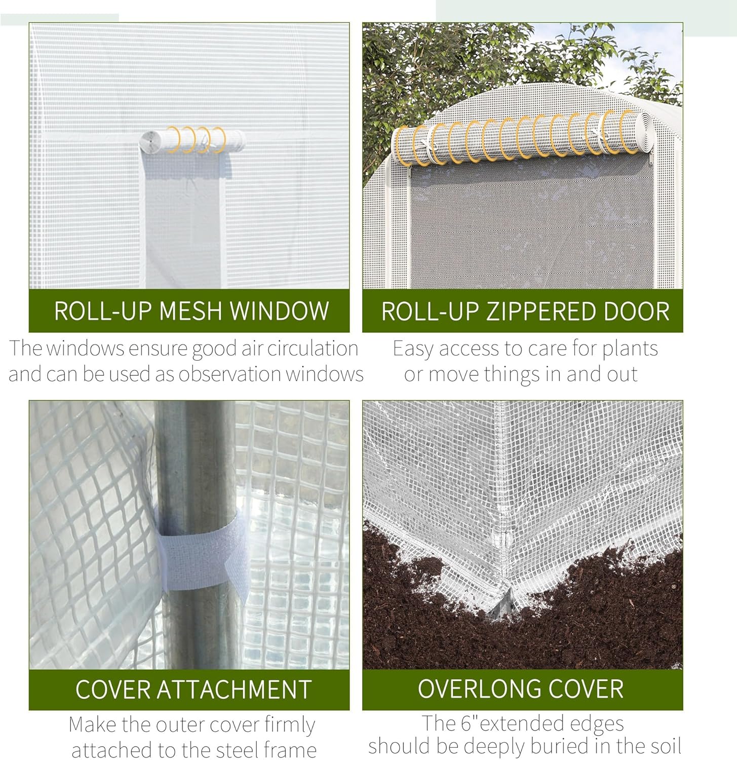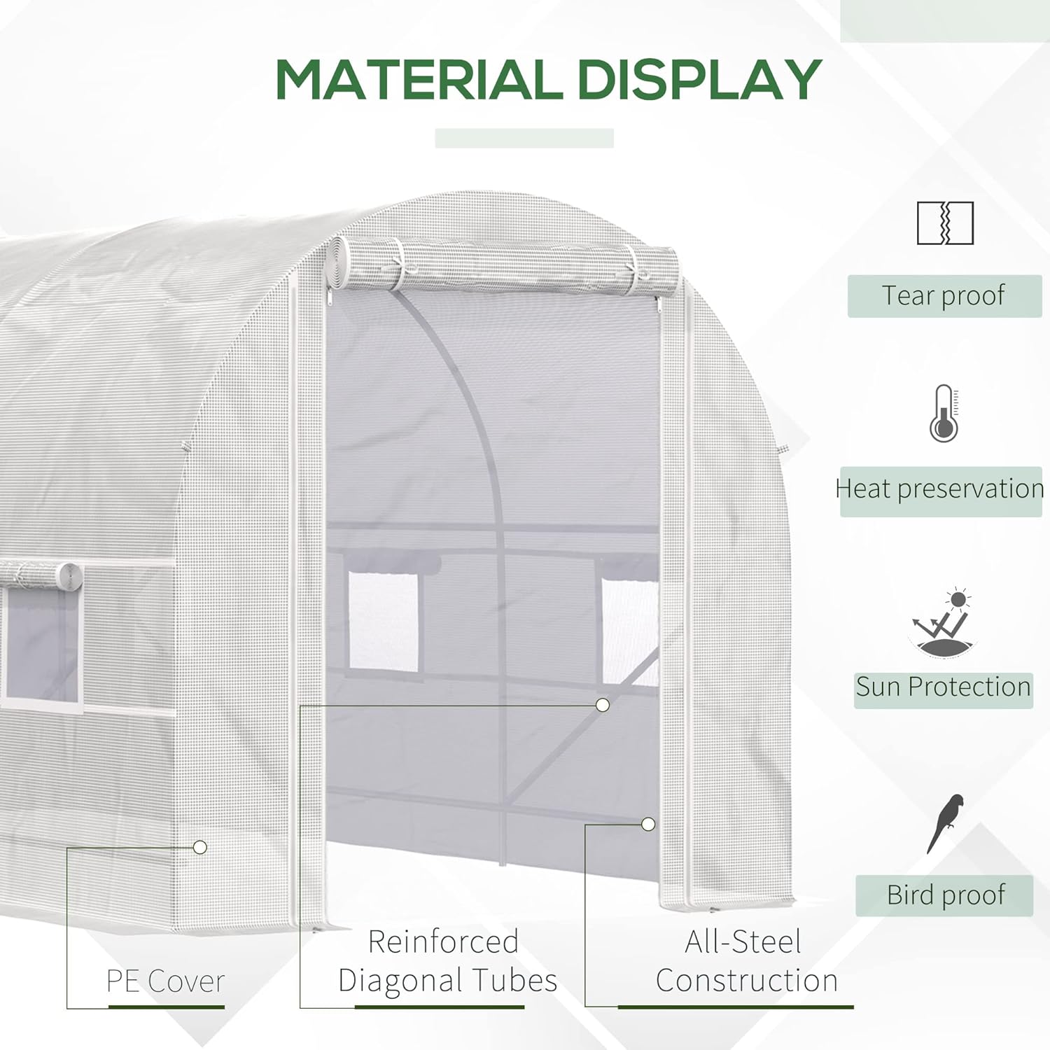 Outsunny 15' x 7' x 7' Walk-in Tunnel Greenhouse, Large Heavy Duty Garden Hot Green House Kit with 6 Roll-up Windows & Roll Up Door, Steel Frame for Garden Plants, White