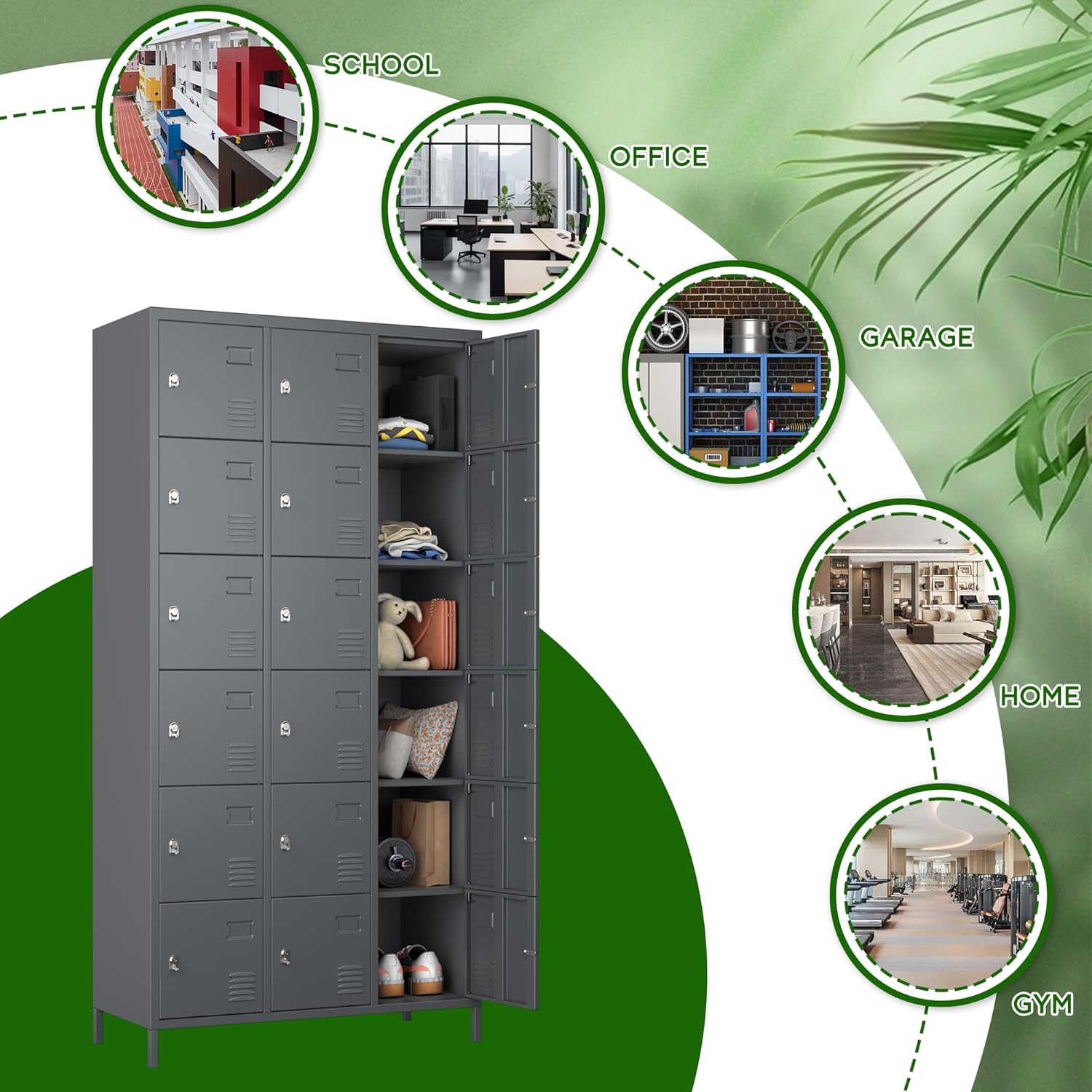 18 Doors Metal Lockers for Employees for Offices School Gyms Home,Assembly Required,Dark Gray
